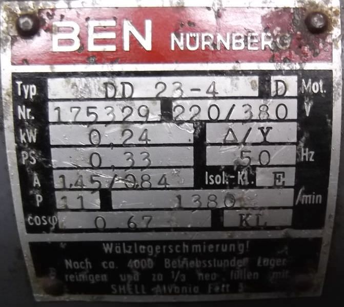Three-phase motor, electric motor-Power: 0.24 kW-Speed: 1380 rpm-Shaft: Ø 14 mm-Construction: B3-Protection class: IP 11-Price: per piece-Number: 3x available-Dimensions: 235/210/H150 mm-Weight: 11.2 kg