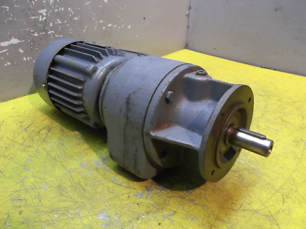 Geared motor, electric motor, three-phase motor -Speed: 784 rpm -Power: 0.12 kW -Design: B3 -Shaft diameter: Ø 13 mm -Protection class: IP 44 -Weight: 5 kg
