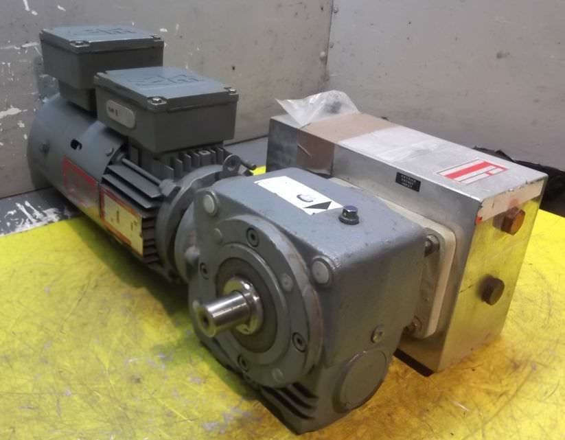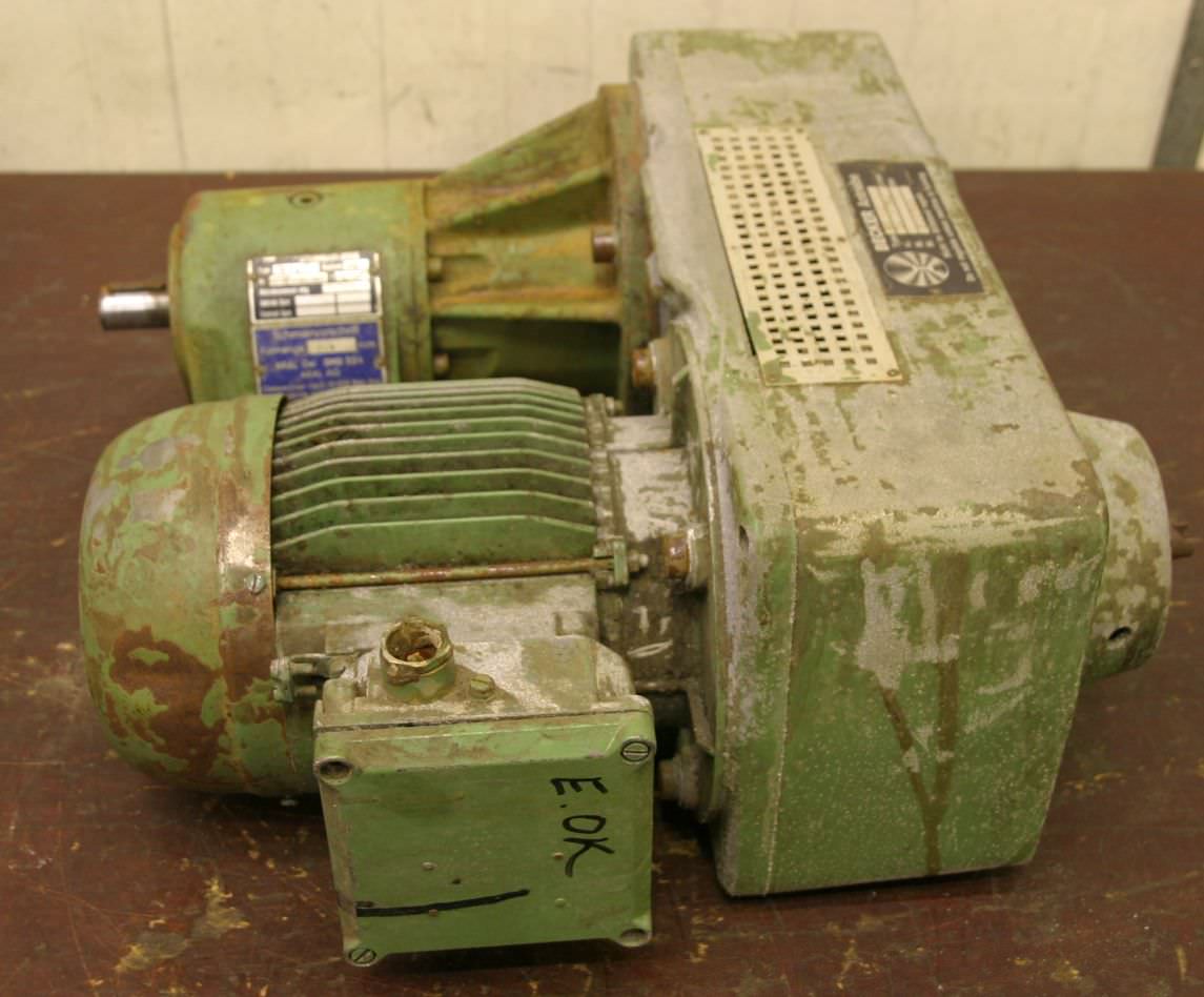 Gear motor, electric motor, electric gear motor-Speed: 7.5 rpm-Power: 0.55 kW-Construction: B5-Diameter shaft: 50 mm-Protection class: IP 55-Brake: 24 V-Dimensions: 820/320/320 mm-Weight: 100 kg