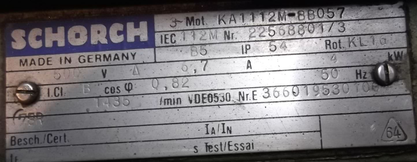 electric motor, three-phase motor -Manufacturer: VEM, electric motor type DMK 5/6 RA -Power: 3.5 kW -Speed: 950 rpm -Shaft: Ø 28 x 60 mm -Design: B3 -Protection class: P33 -Dimensions: 515/360/H285 mm -Weight: 77 kg