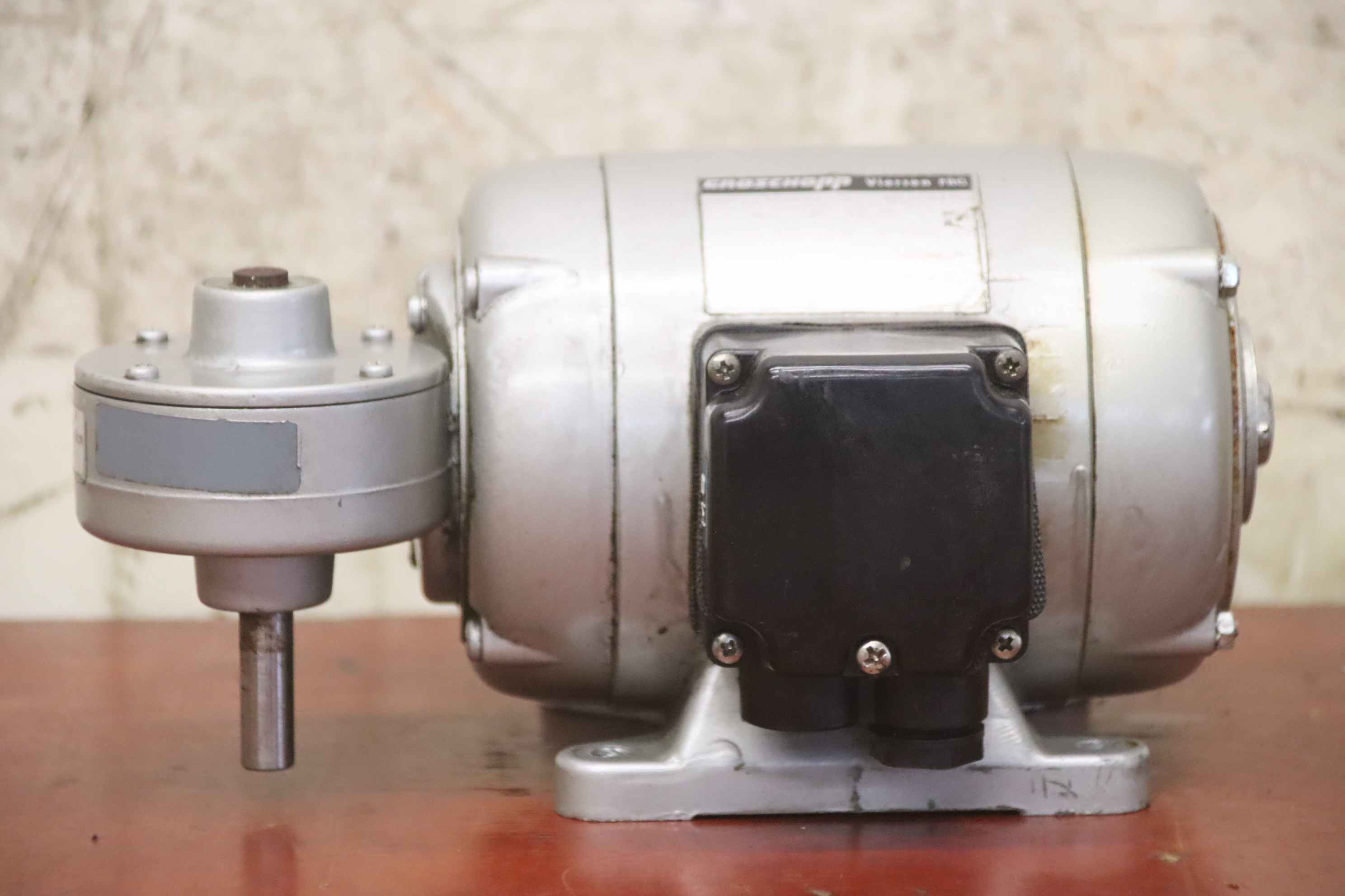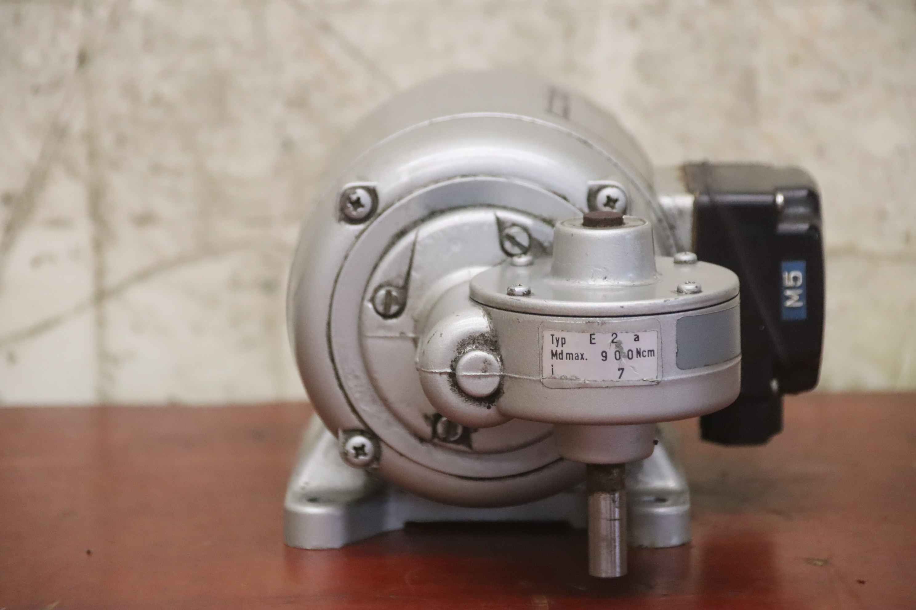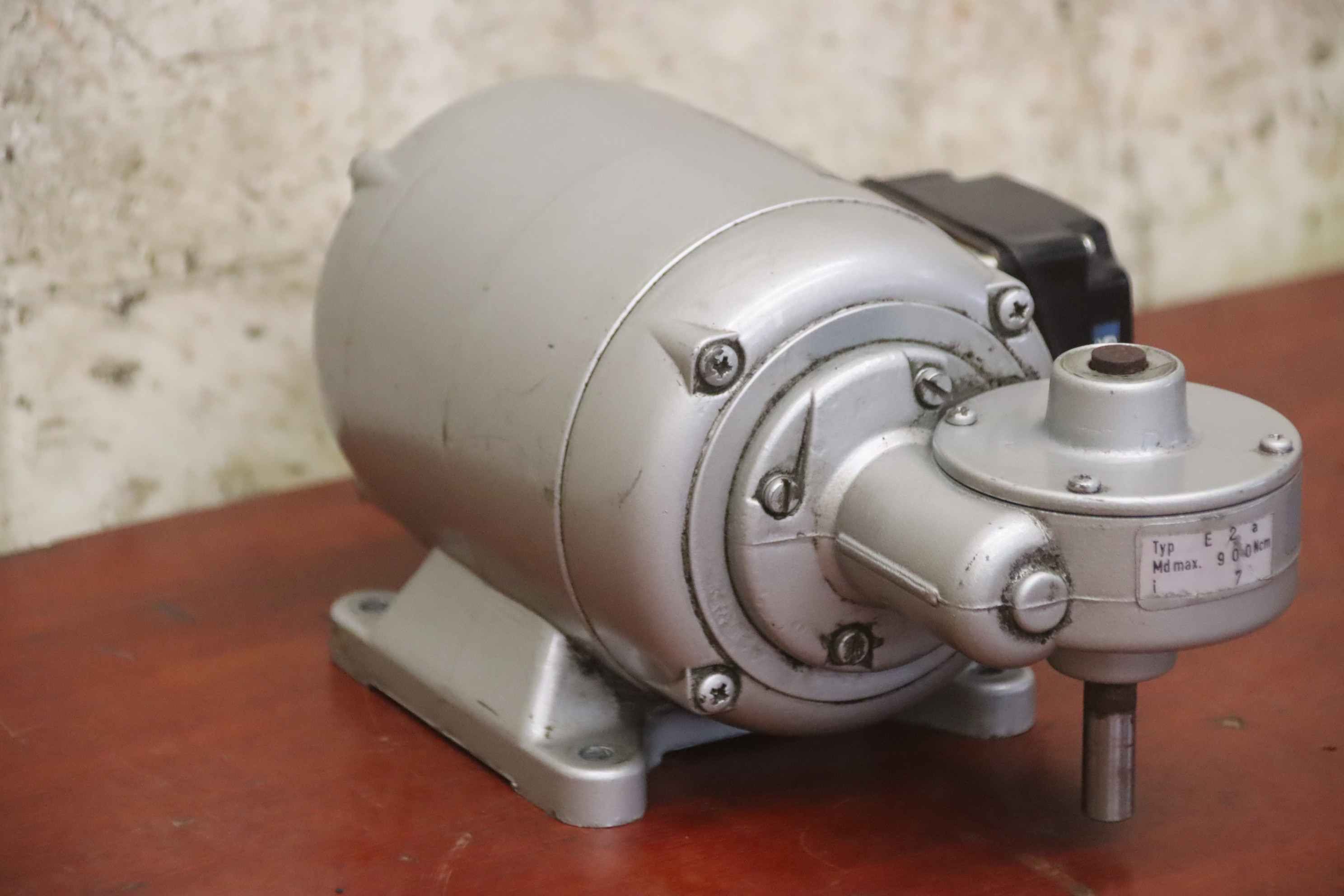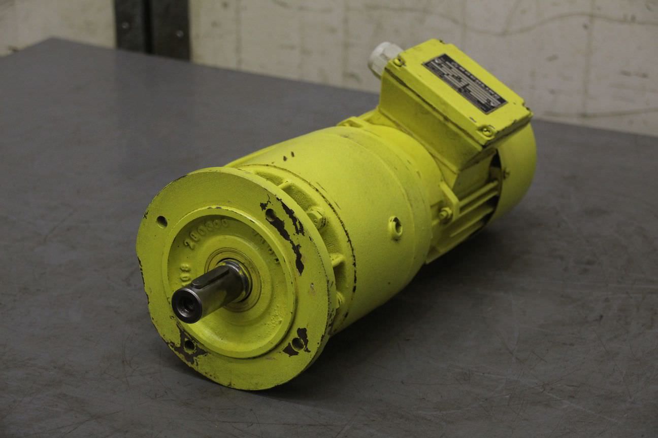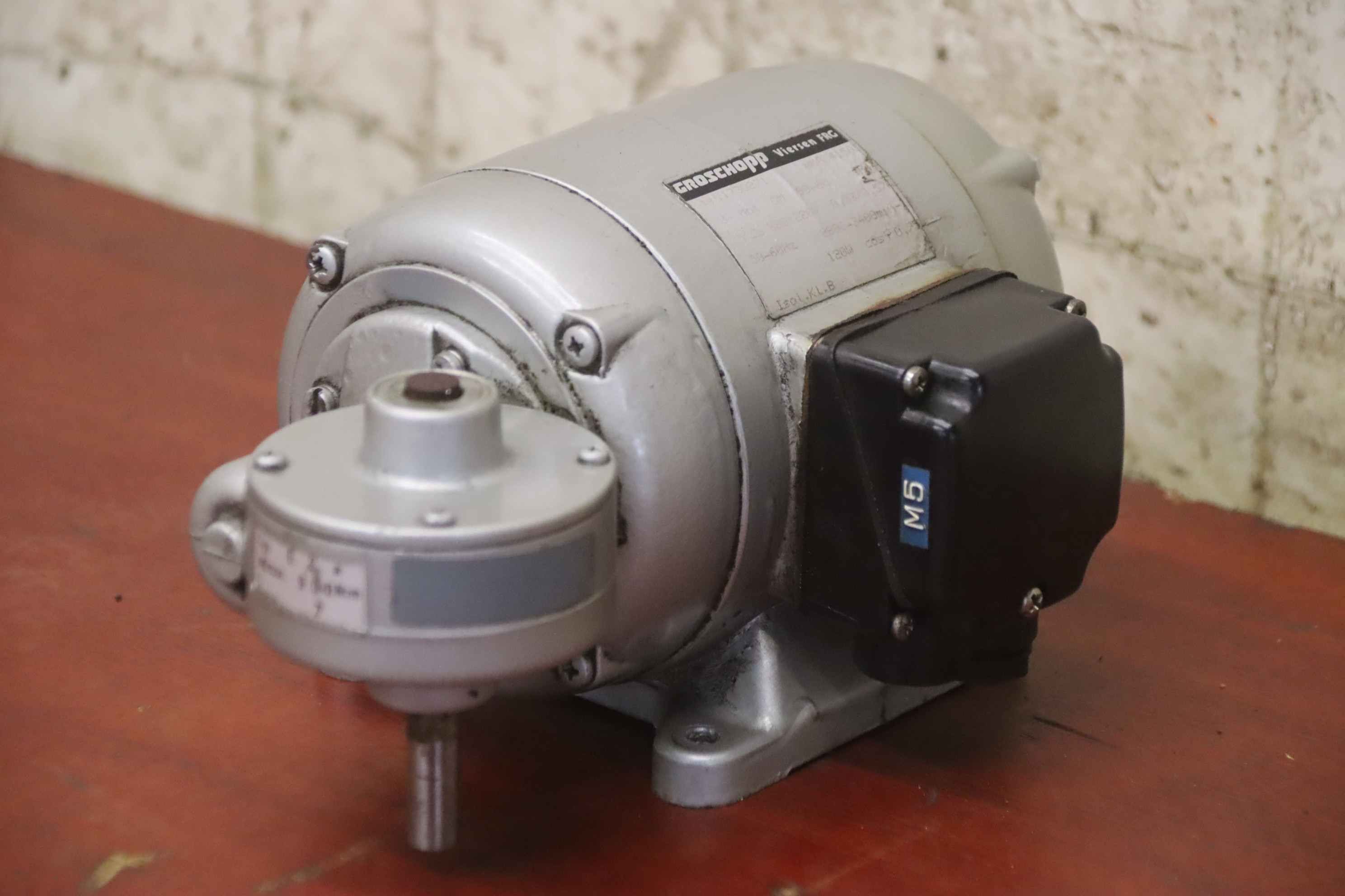 Gear motor, electric motor, electric gear motor-Manufacturer: Groschopp, geared motor-Gearbox: Type E 2 ai= 7-Speed speed: approx. 400 rpm-Motor: Type WK 0341501 0.12 kW / 2800 rpm-Shaft: Ø 10 x 30 mm-Protection rating: IP44-Total dimensions: 225/150/H115 mm-Weight: 4.4 kg