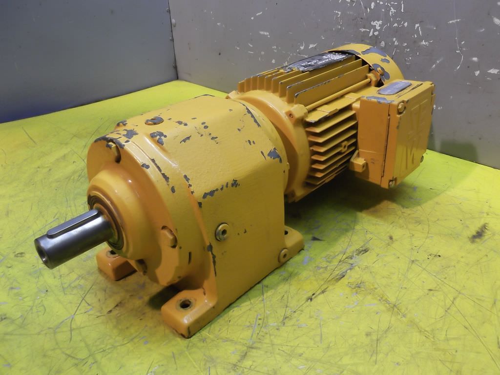 Three-phase synchronous motor, geared motor, electric motor -Three-phase synchronous motor: Baumüller type DSOG 100-M -Transmission: SEW-Eurodrive type KA86 LP112 -Speed: 3000 rpm -Power: 22 kW -Brake -External fan -Design: Hollow shaft -Shaft diameter: Ø 65 mm -Brake -Protection class: IP 54 -Number: 4x motors available Price: per piece -Dimensions: 1150/300/H400 mm -Weight: 180 kg