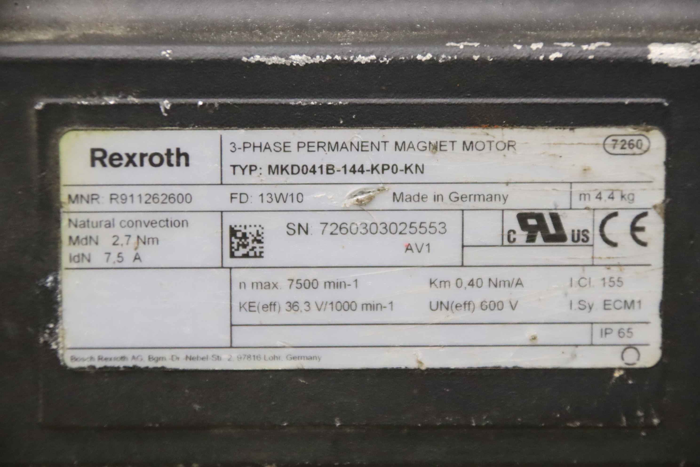 Permanent Magnet Motor, Permanent Magnet Motor, Electric Motor, Perm.Magn-Mot, Perm Magnet Motors, Servo Motor-Manufacturer: Rexroth, 3-phase permanent magnet motor-Type: MKD041B-144-KPO-KN-Speed: 7500 rpm-Shaft: Ø 14 x 30 mm-Dimensions: 275/83/H112 mm-Weight: 4.6 kg