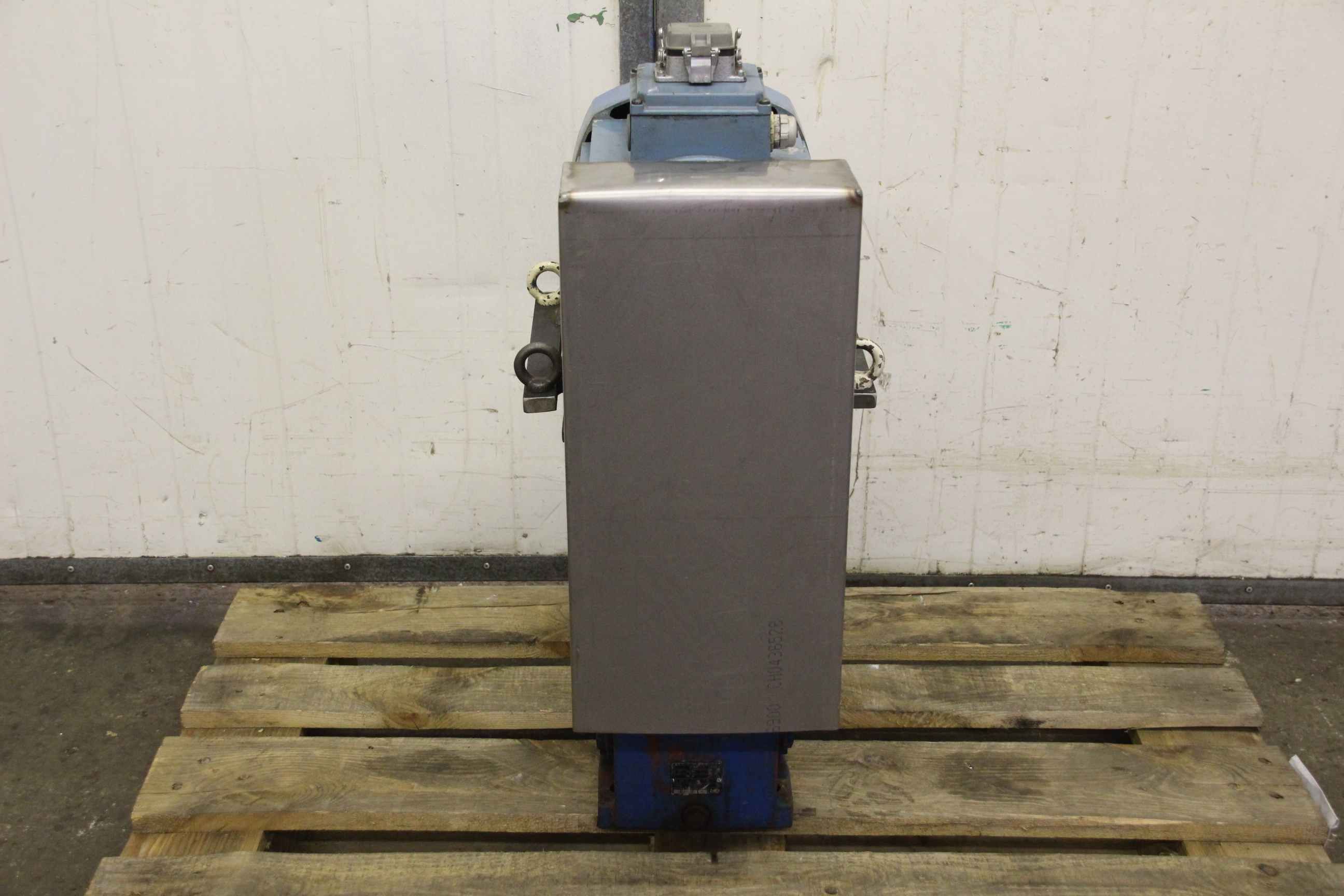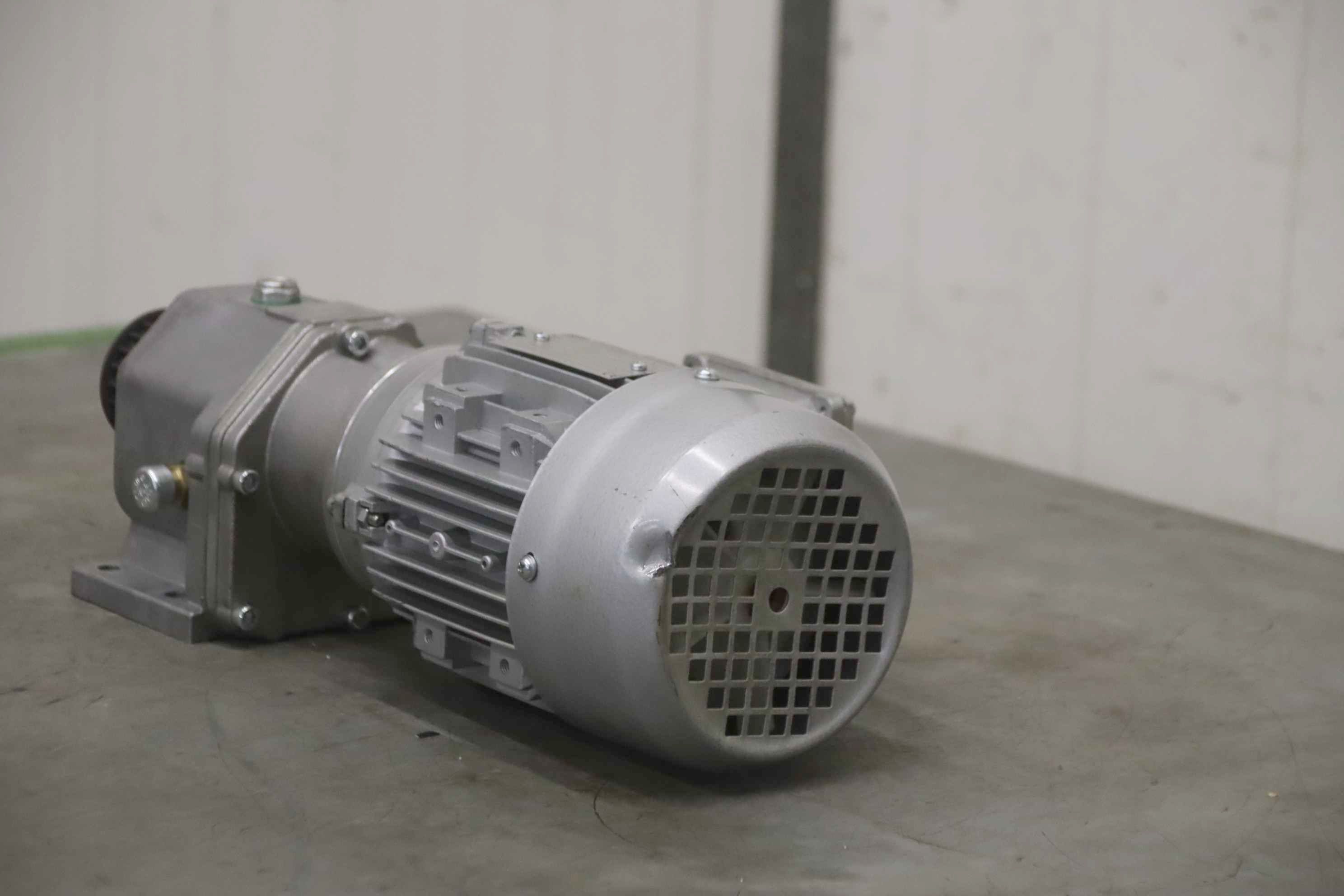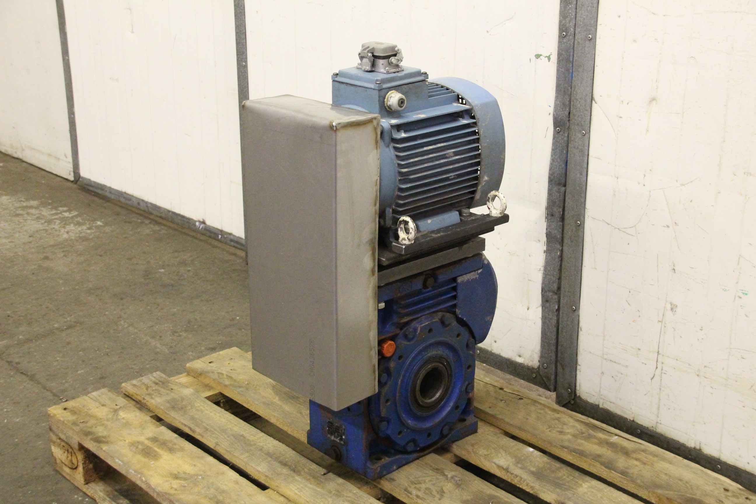 geared motor, electric motor -Speed: 41 rpm -Power: 0.37 kW -Design: B14 angle -Shaft diameter: Ø 30 mm -Brake: 24 V -Protection class: IP 65 -Weight: 29 kg