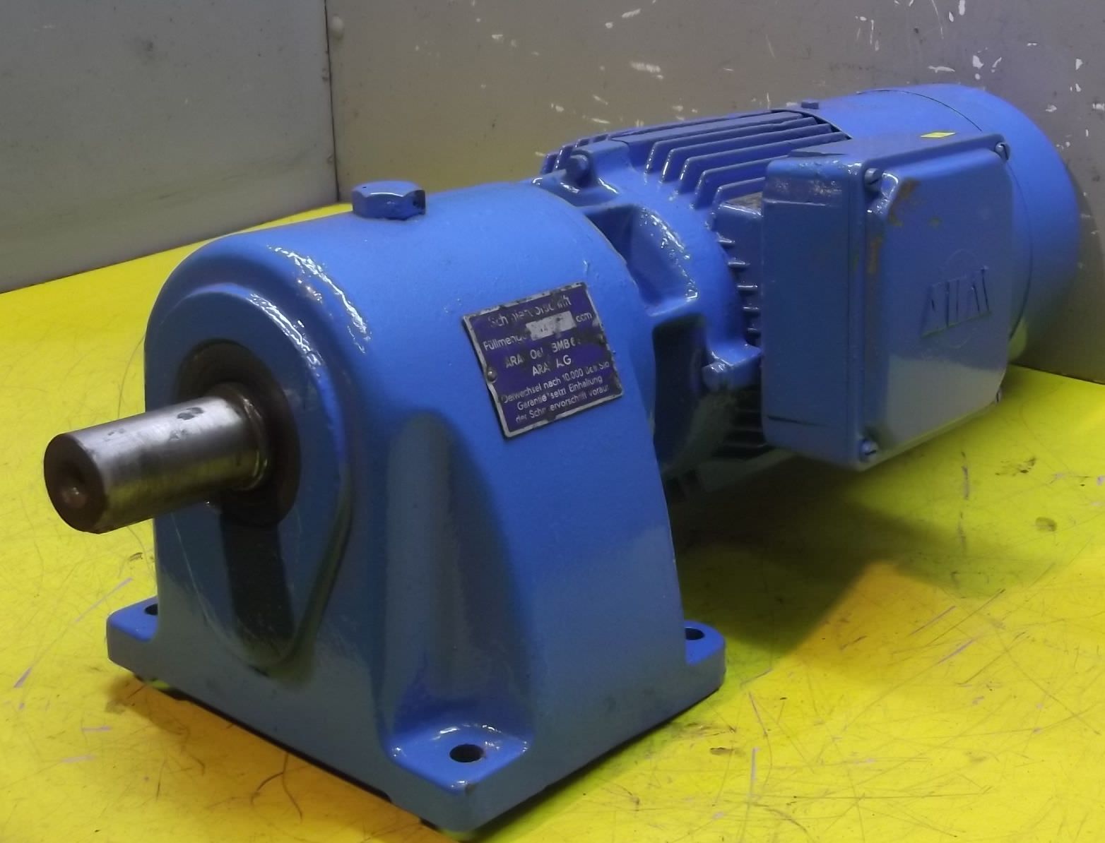 Gear motor, electric motor, three-phase motor-Speed: 141 rpm-Power: 0.37 kW-Construction: B3 angle-Shaft: Ø 18 mm-Protection class: IP 44-Number: 2x available-Price: per piece-Dimensions: 320/143/H220 mm-Weight: 9.6 kg