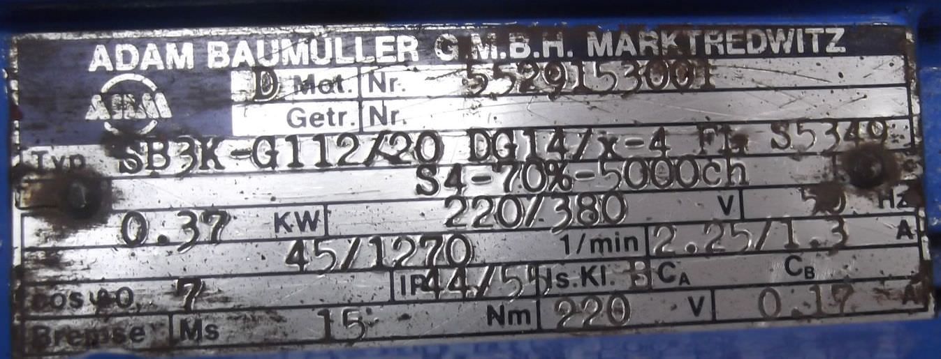 adjustable gear motor, variable speed gear motor, electric motor-Motor manufacturer: ABM-Gearbox manufacturer: ABM-Motor power: 0.37 kW-Speed: 45 rpm-Construction: B3-Drive shaft: Ø 30 mm-Protection class: IP 44/54-Dimensions: 550/230/H195 mm-Weight: 30 kg