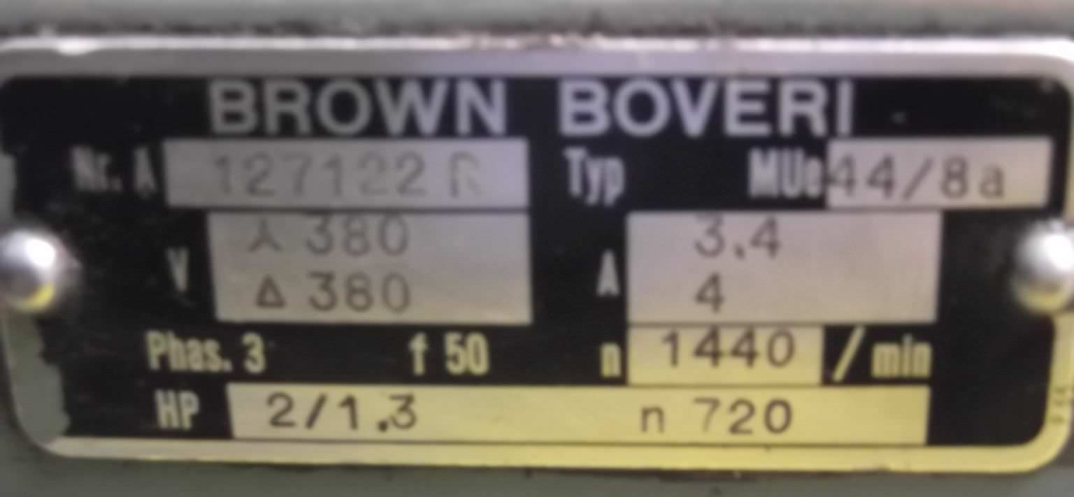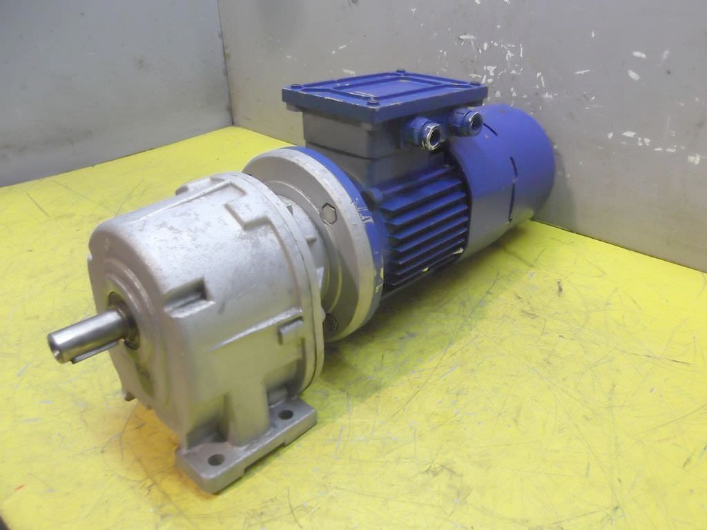 Gear motor, electric motor, electric gear motor -Engine manufacturer: ASEA type MBT132S -Gearbox manufacturer: Rossi, type RV125U02B -Speed: 99 rpm -Power: 5.5 kW -Construction: B3 -Hollow shaft: Ø 60 x 210 mm -Protection class: IP54 -Dimensions: 470/320/H775 mm -Weight: 149 kg
