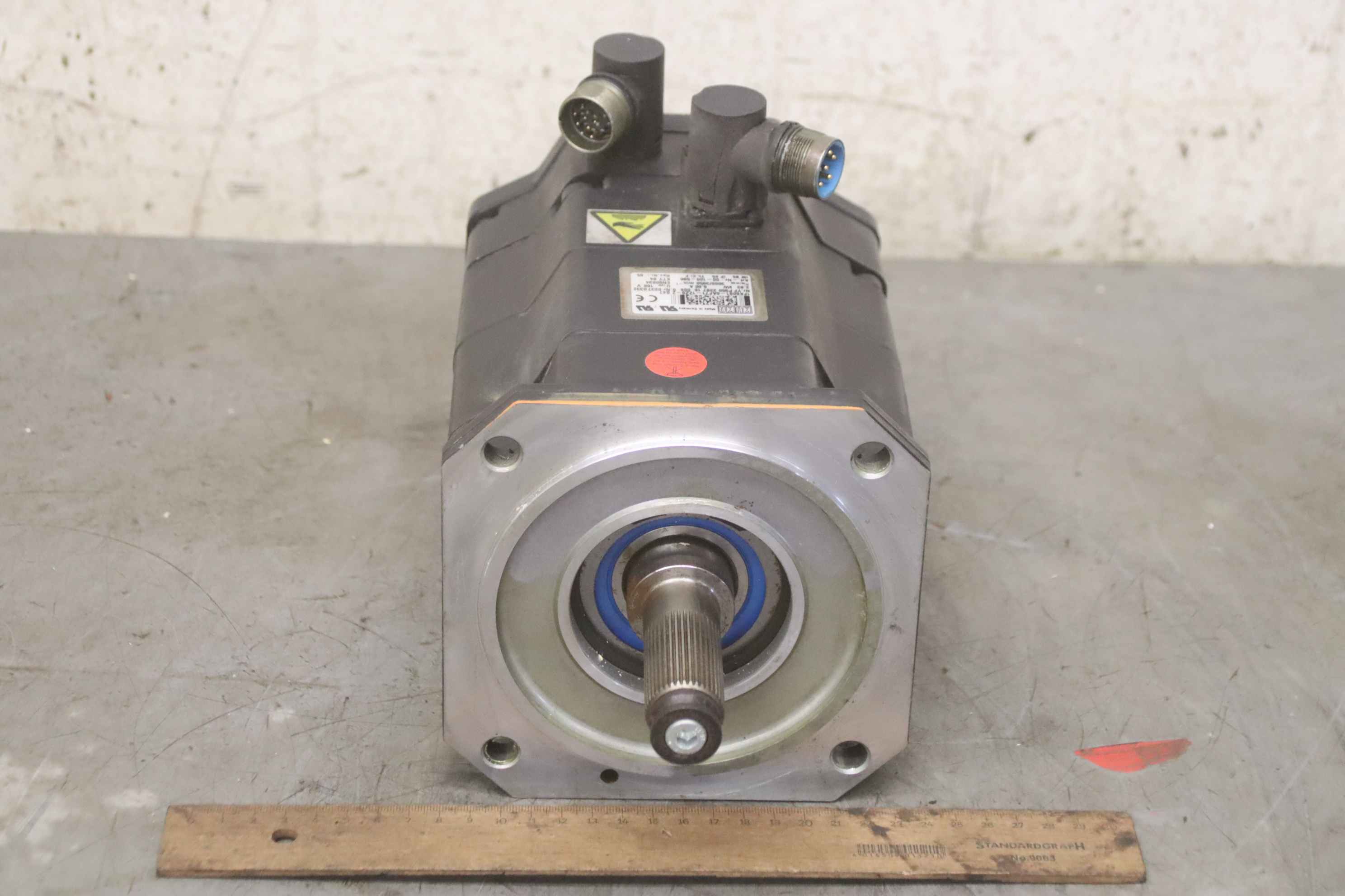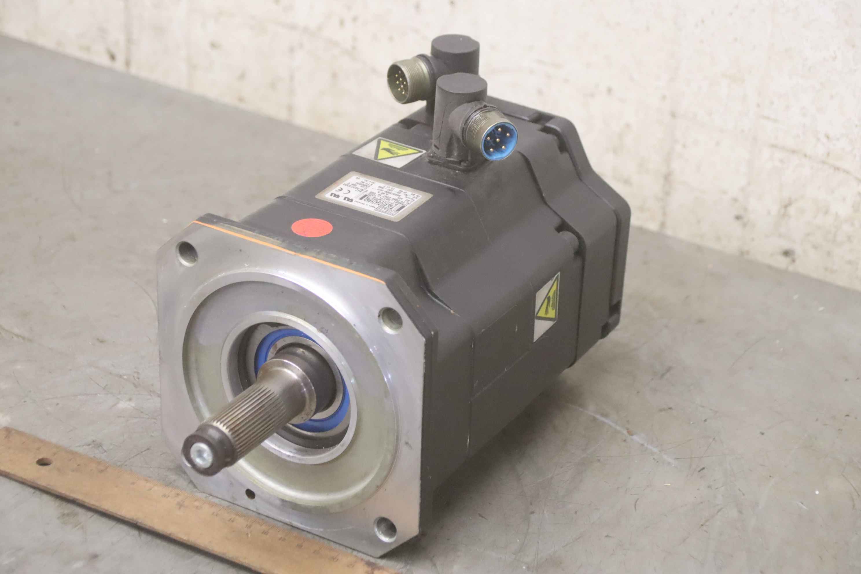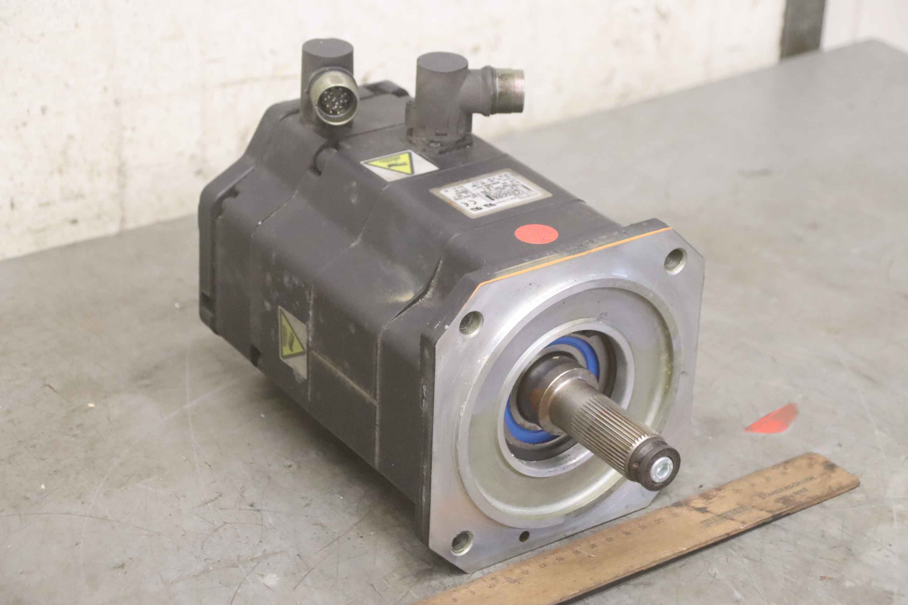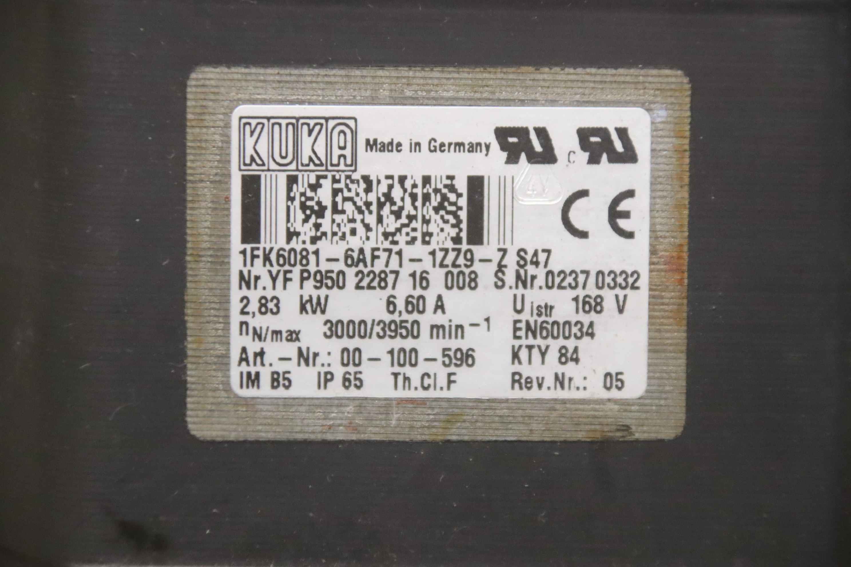 Servo motor, geared motor, electric motor, three-phase motor -Manufacturer: KUKA, servomotor type 1FK6081-6AF71-1ZZ9-Z S47 from robot KR125/3 KR125L90/3 -Voltage: 168 V -Power: 2.83 kW -Speed: 3000/3950 rpm -Shaft: Ø 25 x 55 mm -Number: 9x motors available -Price: per piece -Dimensions: 300/155/H185 mm -Weight: 16 kg/pc.