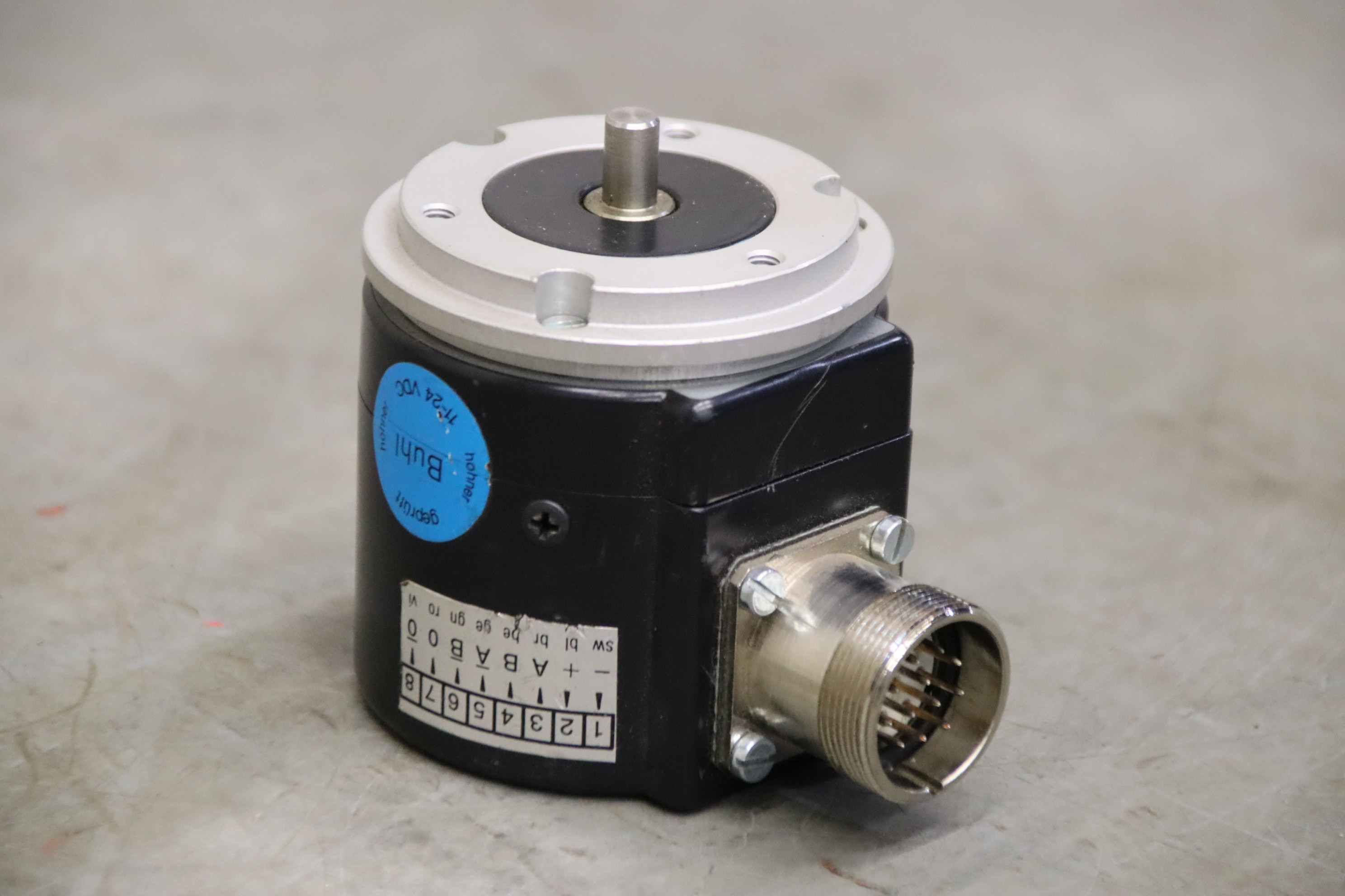 Incremental rotary encoder with solid shaft, absolute rotary encoder, encoder, rotary encoder, encoder, absolute rotary encoder, absolute encoder, function encoder, resolver, resolver, rotary pulse encoder, tacho generator, incremental encoder-Manufacturer: Hohner, Encoder rotary encoder-Type: 10 23651 400-Shaft: Ø 6 x 10 mm-Quantity: 1x encoder available-Dimension: 80/58/H69 mm-Weight: 0.5 kg