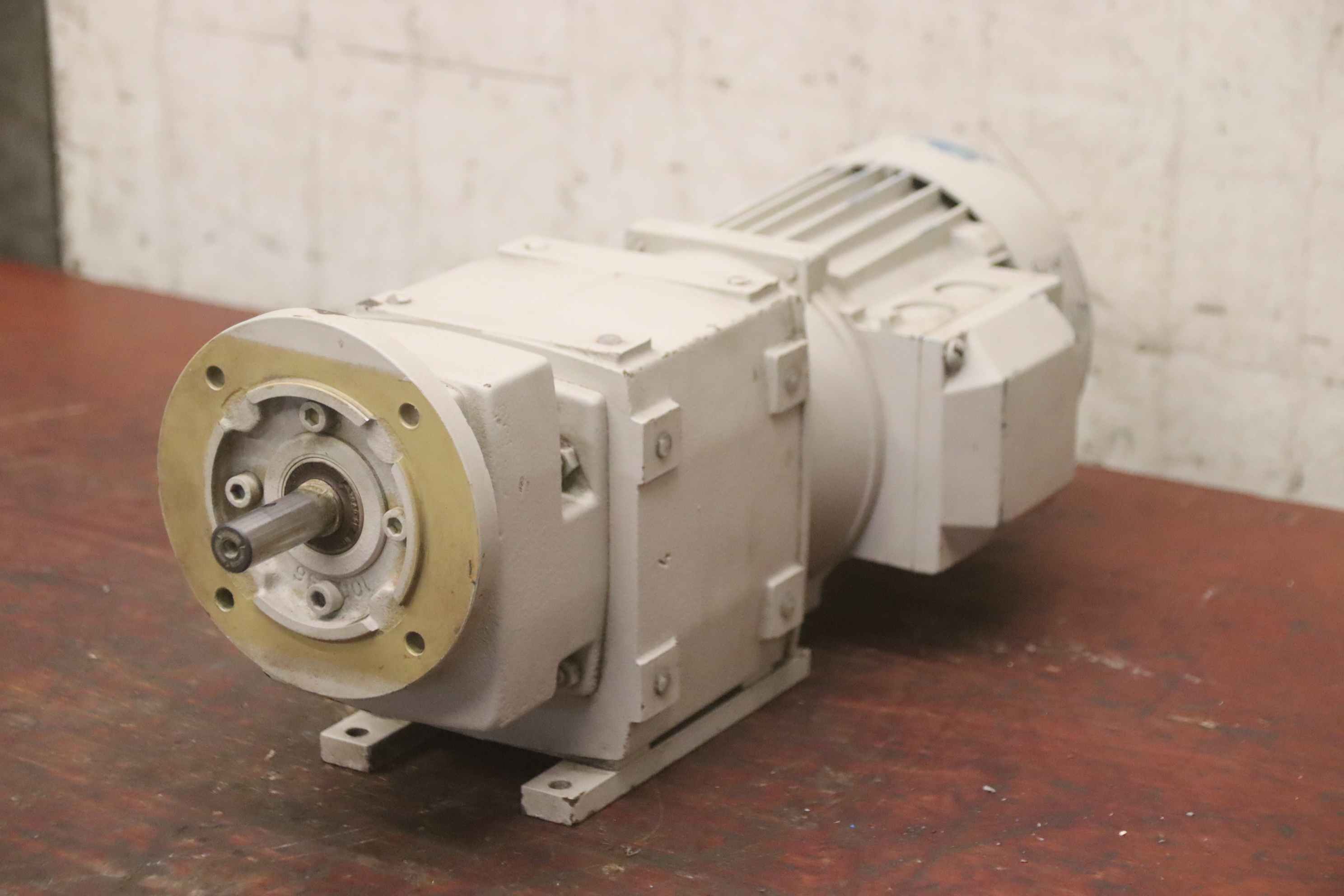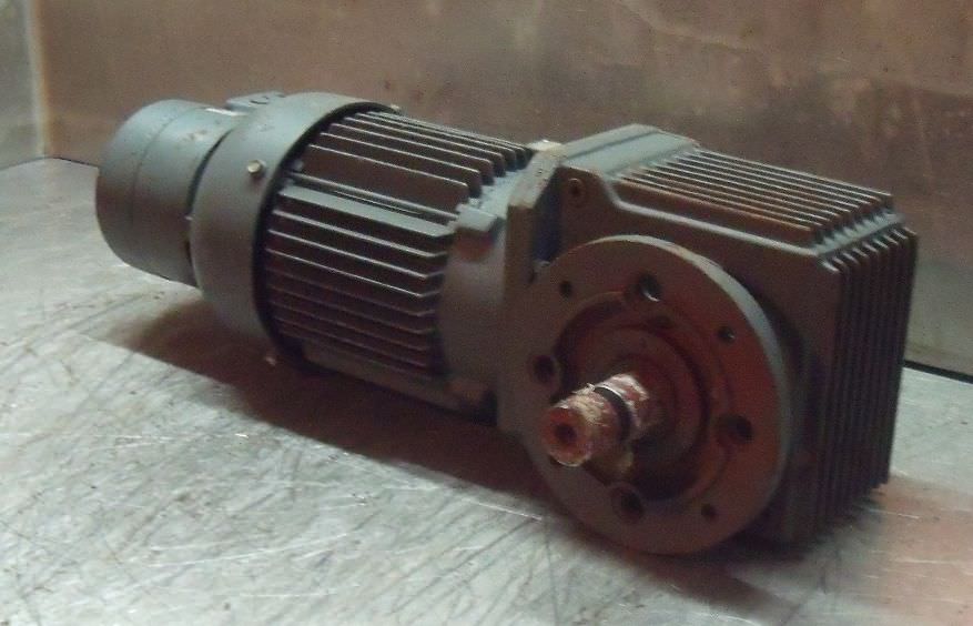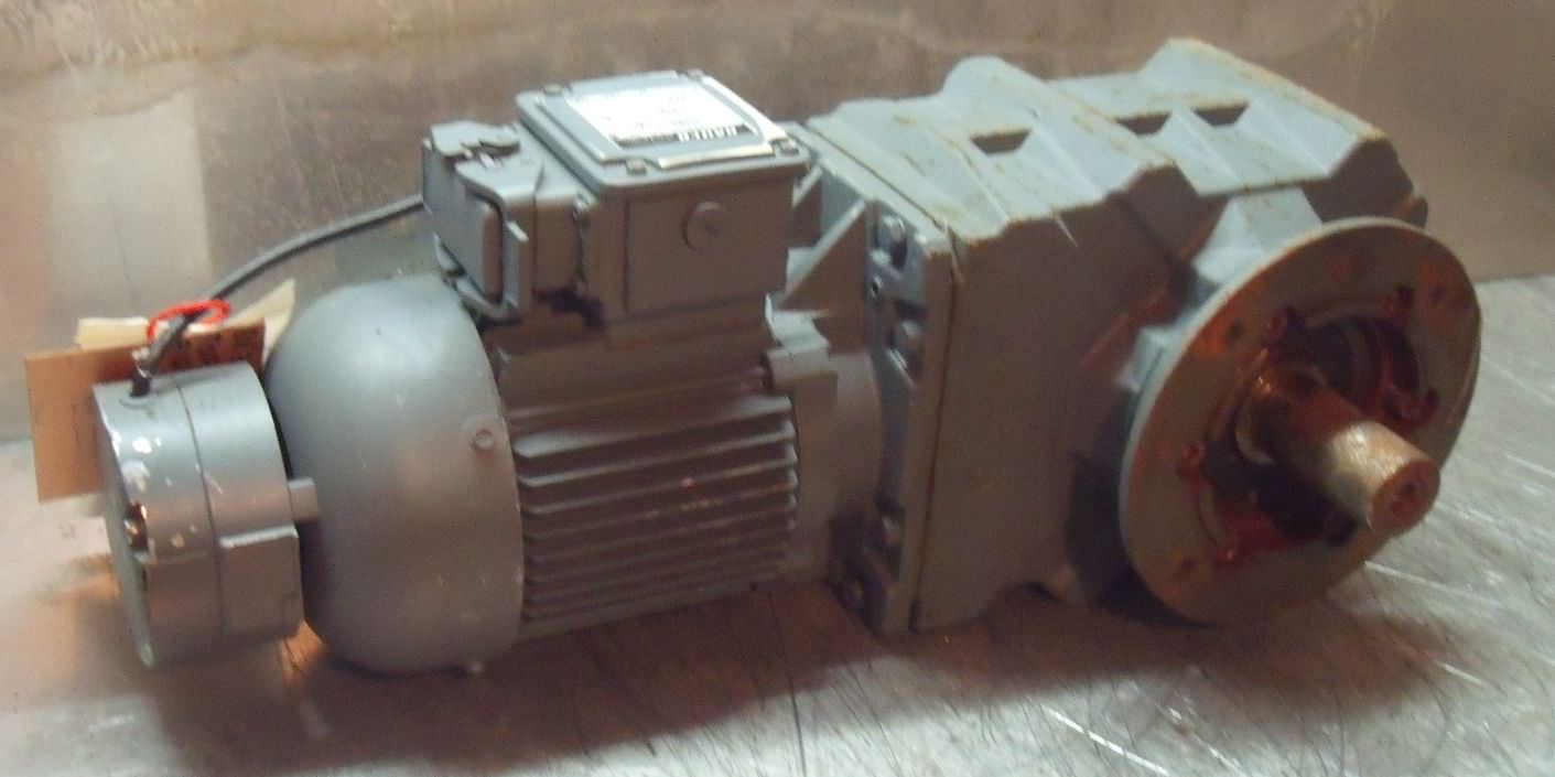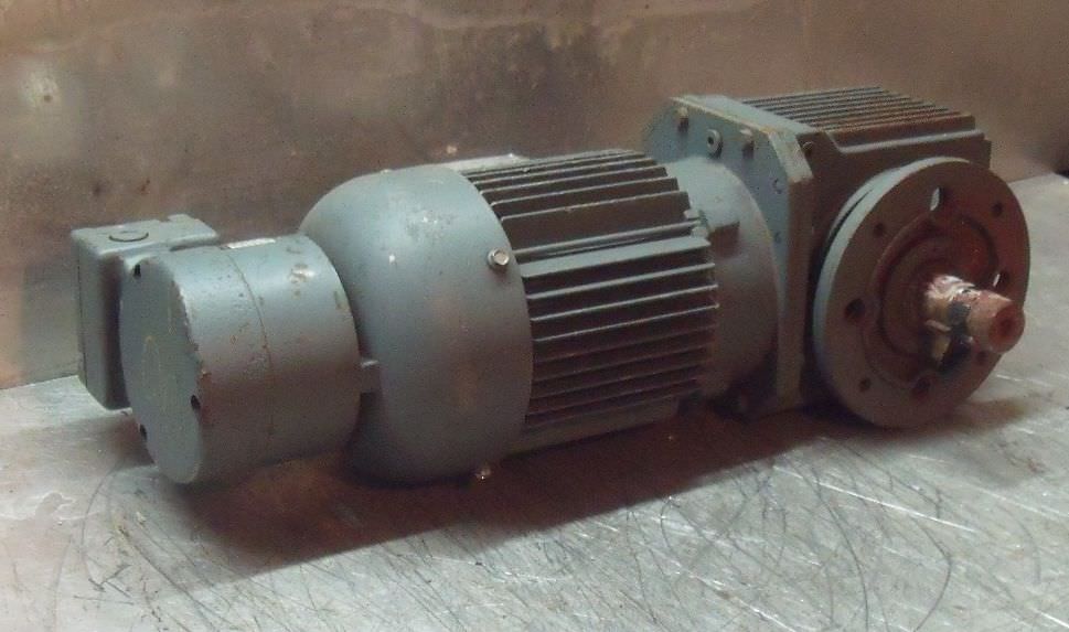 adjustable gear motor, variable speed gear motor, electric motor-Manufacturer variable speed gear unit SEW type: R40FV01-Manufacturer motor SEW type: DFT80K-4-Motor power: 0.55 kW-Speed range: 20-85 rpm-Motor: adjustable-height of the shaft axis: 90 mm-Drive shaft: Ø 25 mm-Construction: B3/B5-Number: 3 motors available-Price: per piece-Dimensions: 480/200/H420 mm-Weight: 37 kg