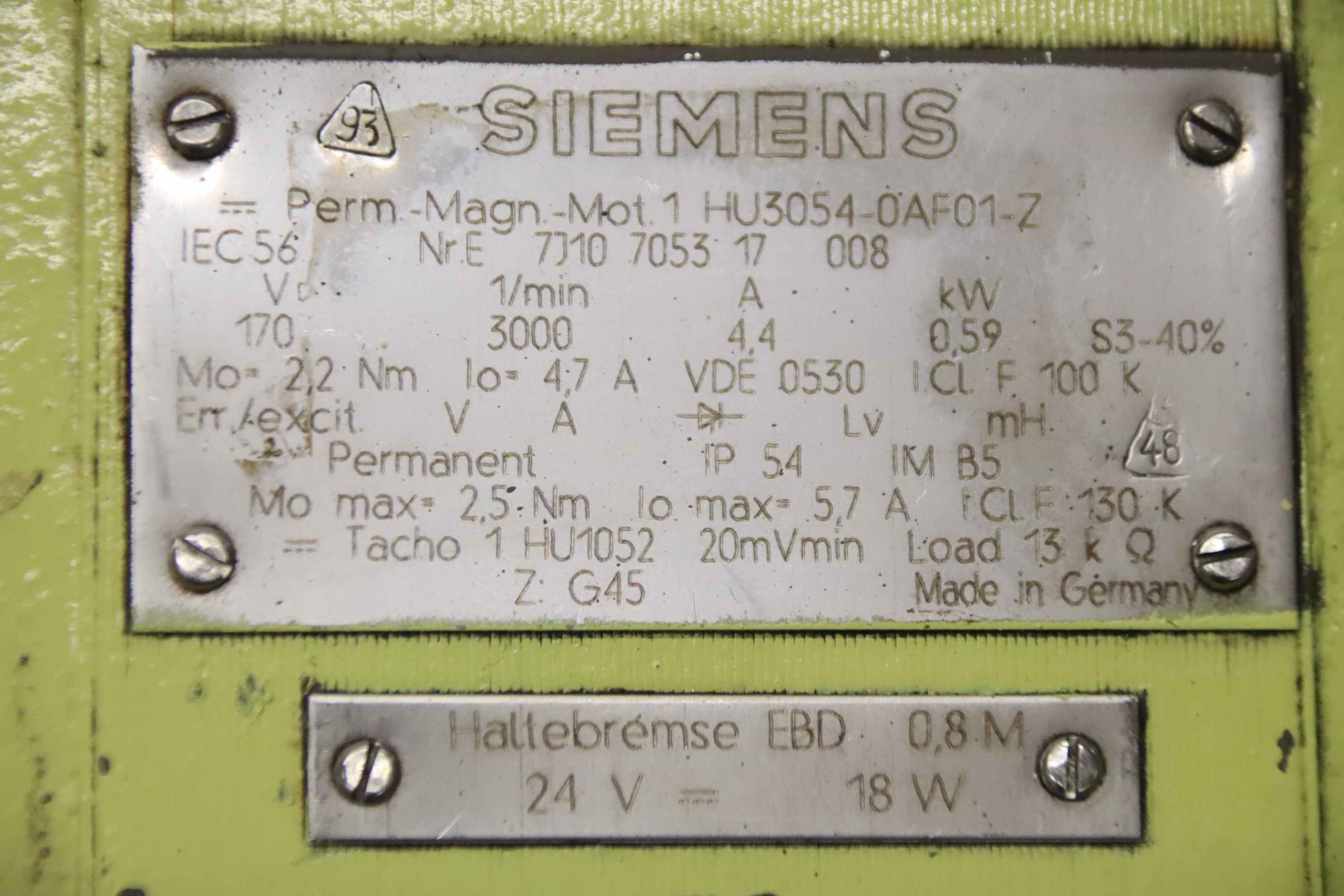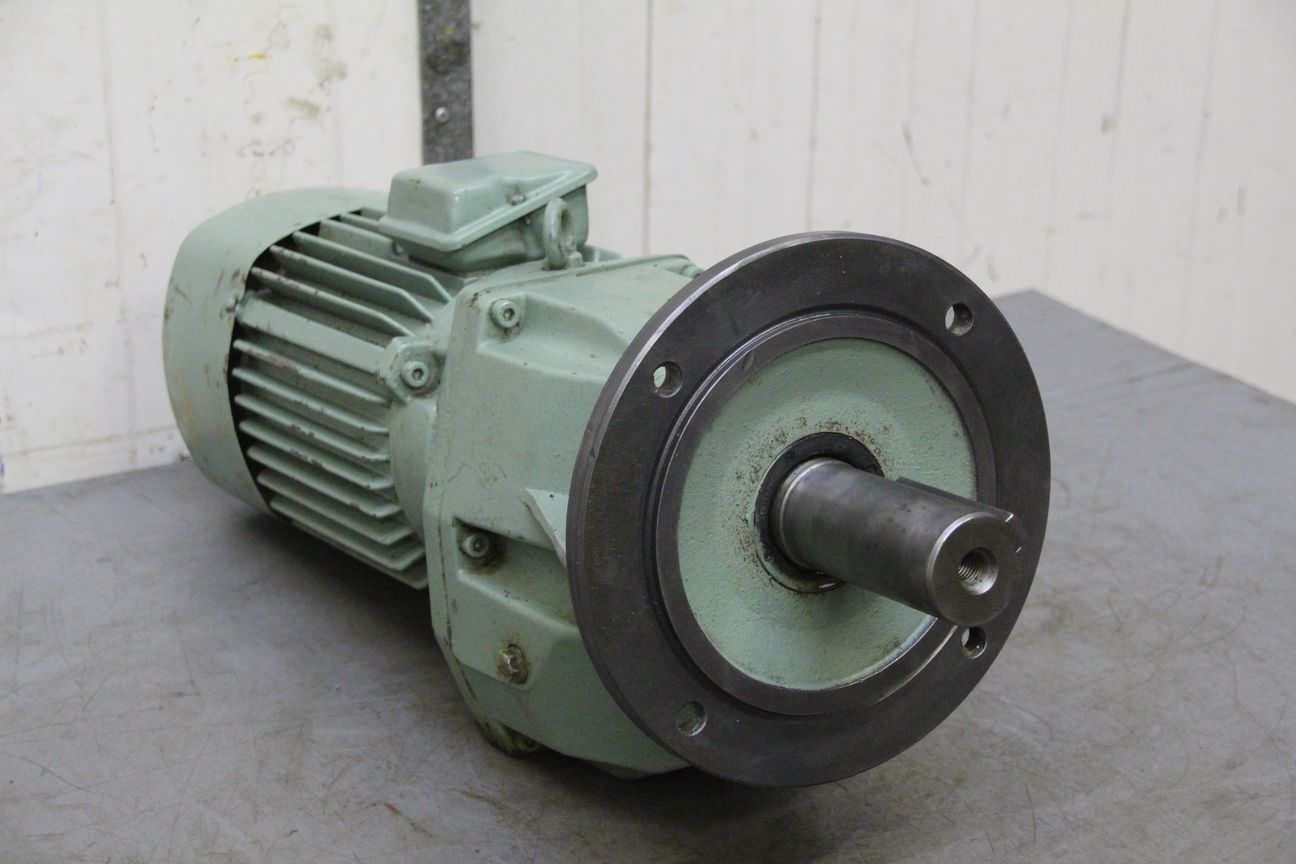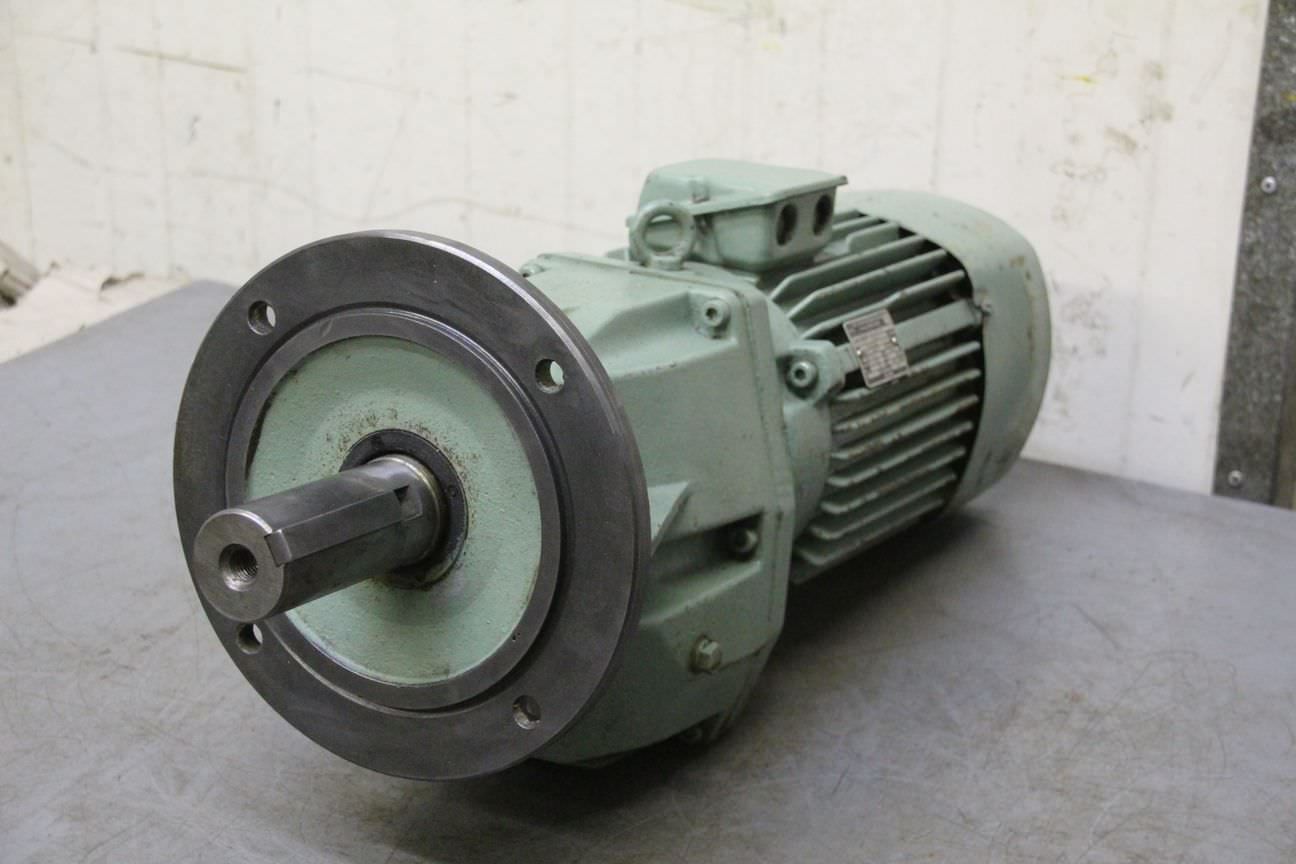 Gear motor, electric motor, three-phase motor, electric gear motor-Manufacturer: Bonfigliol, geared motor with brake-Transmission: Bonfiglioli type MVF 49/P-Speeds: 125 rpm i= 1:24-Motor manufacturer: Siemens, with holding brake-Voltage: 170 V-Power: 0.59 kW / 3000 rpm-Construction: B3 angle-Shaft: Ø 18 x 18 mm on both sides-Protection class: IP 54-Number: 2x gear motor available-Price per piece-Dimensions: 450/140/H185 mm-Weight: 15 kg/pc.