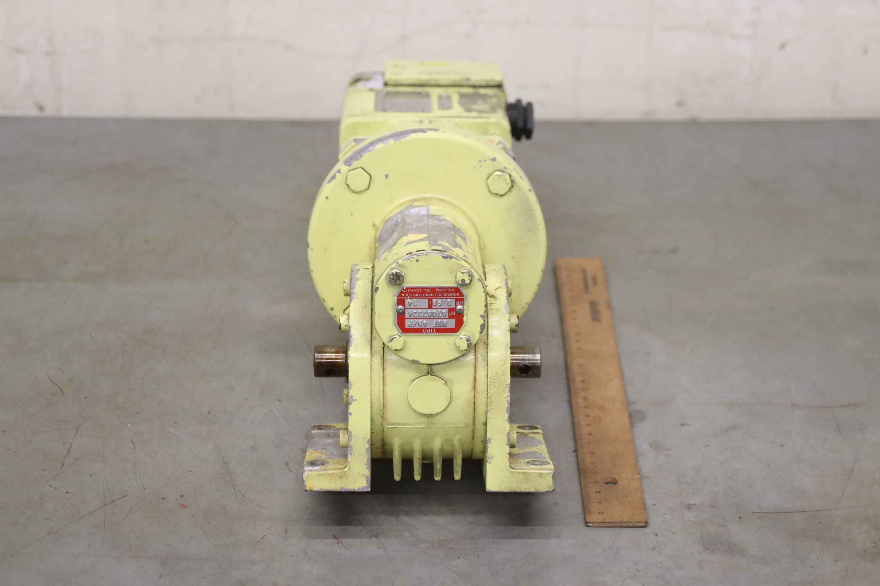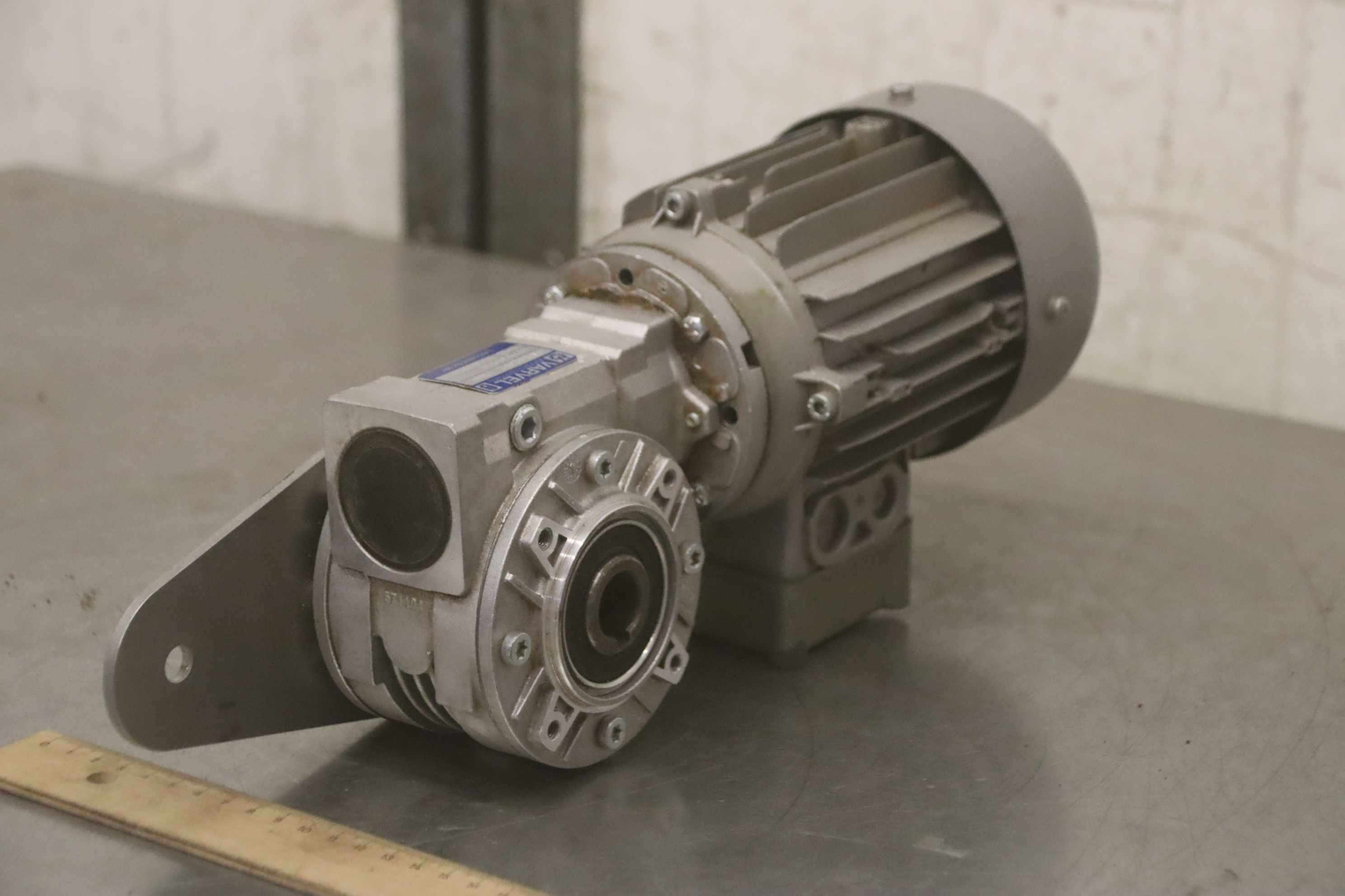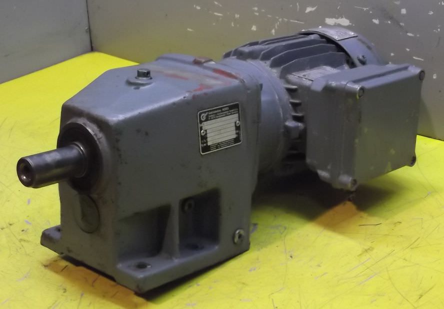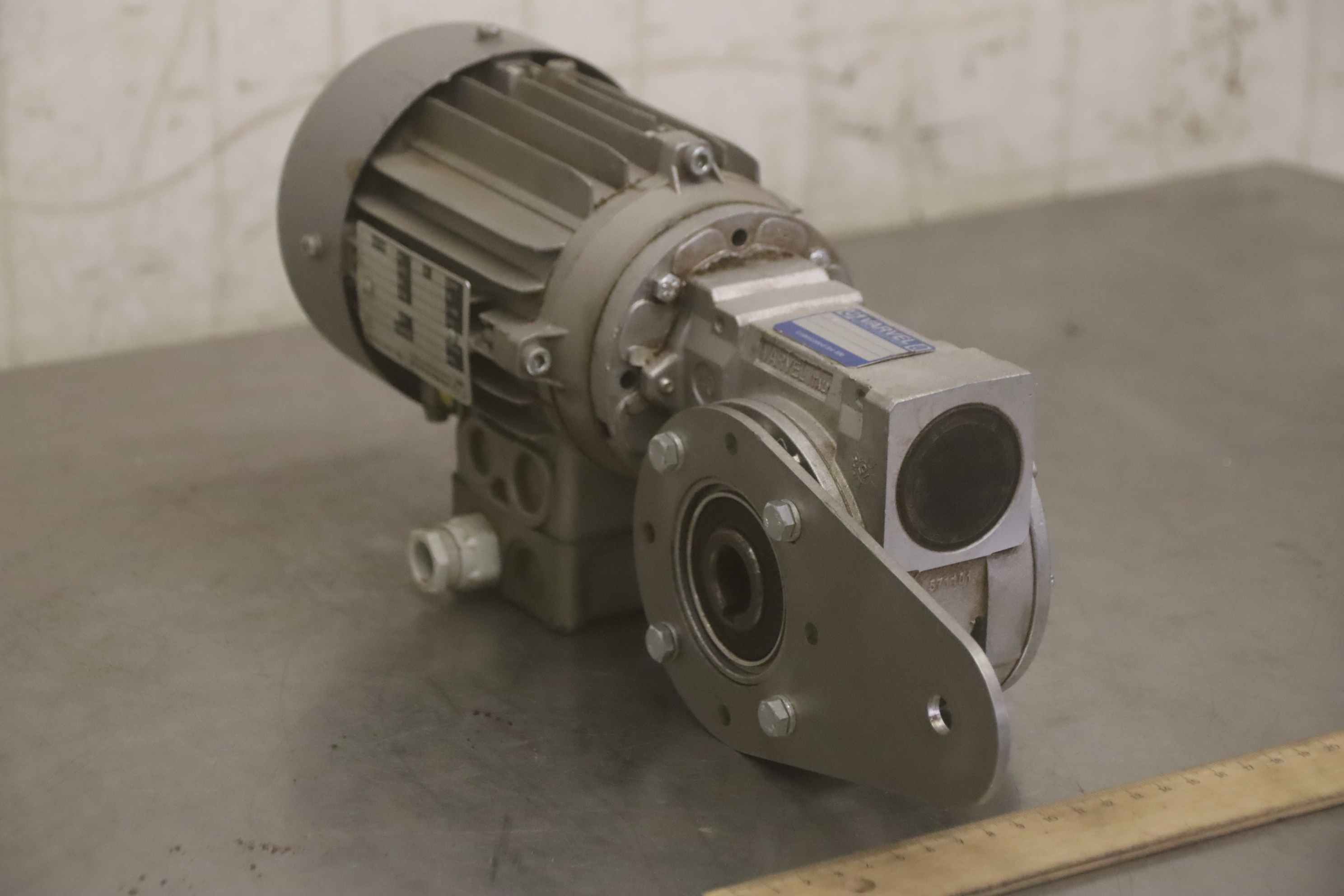 gear motor, electric motor, three-phase motor, electric gear motor-Manufacturer gearbox: SITI, worm gear type MI 60 F GR/19 38/1-Speed speeds: approx. 30 rpm i= 45:1-Engine manufacturer: Lafert Type ST 80/4-Power: 0.52 kW-Protection class: IP55-Hollow shaft: Ø 25 x 120 mm-Dimensions: 420/220/H200 mm-Weight: 17.4 kg