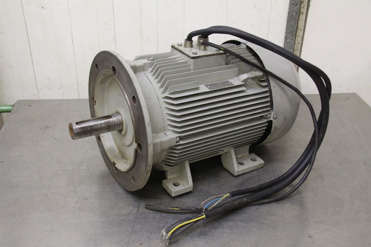 Shunt motor, three-phase motor, electric motor, motor for saddle stitcher, saddle stitcher, speed-controlled, speed-regulated-Power: 0.77 - 23 kW-Speed: 100 - 3000 rpm-Shaft: Ø 48 mm-Construction: B3-Protection class: IP 21-Dimensions: 810/600/H450 mm-Weight: 304 kg