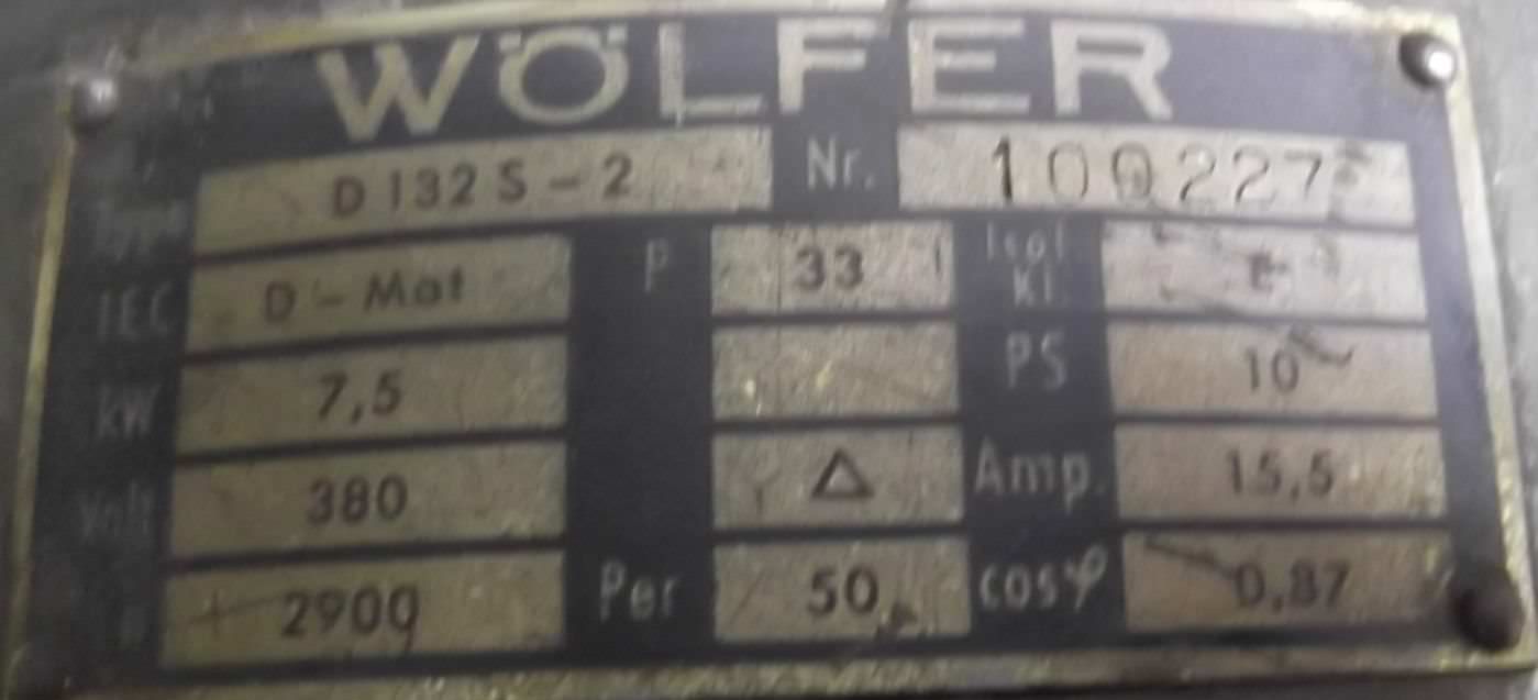 Three-phase motor, electric motor-Power: 7.5 kW-Speed: 2900 rpm-Shaft: Ø 38 mm-Construction: B3-Protection class: IP 33-Number: 2x available-Price: per piece-Dimensions: 445/320/H260 mm-Weight: 69 kg