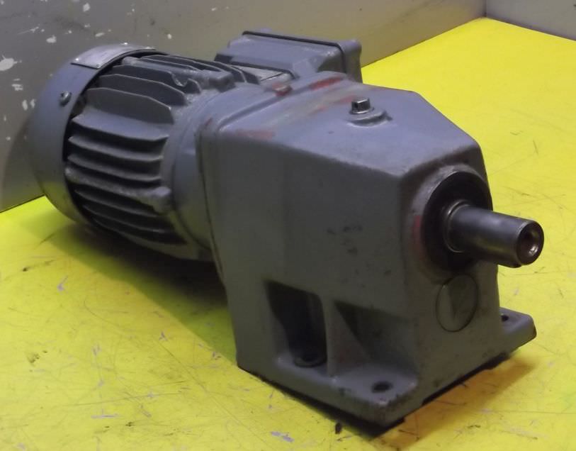 Gear motor, electric motor, three-phase motor, electric gear motor-Speed: 63 rpm-Power: 0.8 kW-Construction: B3-Shaft: Ø 38 x 80 mm-Protection class: IP 44-Dimensions: 450/250/H280 mm-Weight: 36 kg