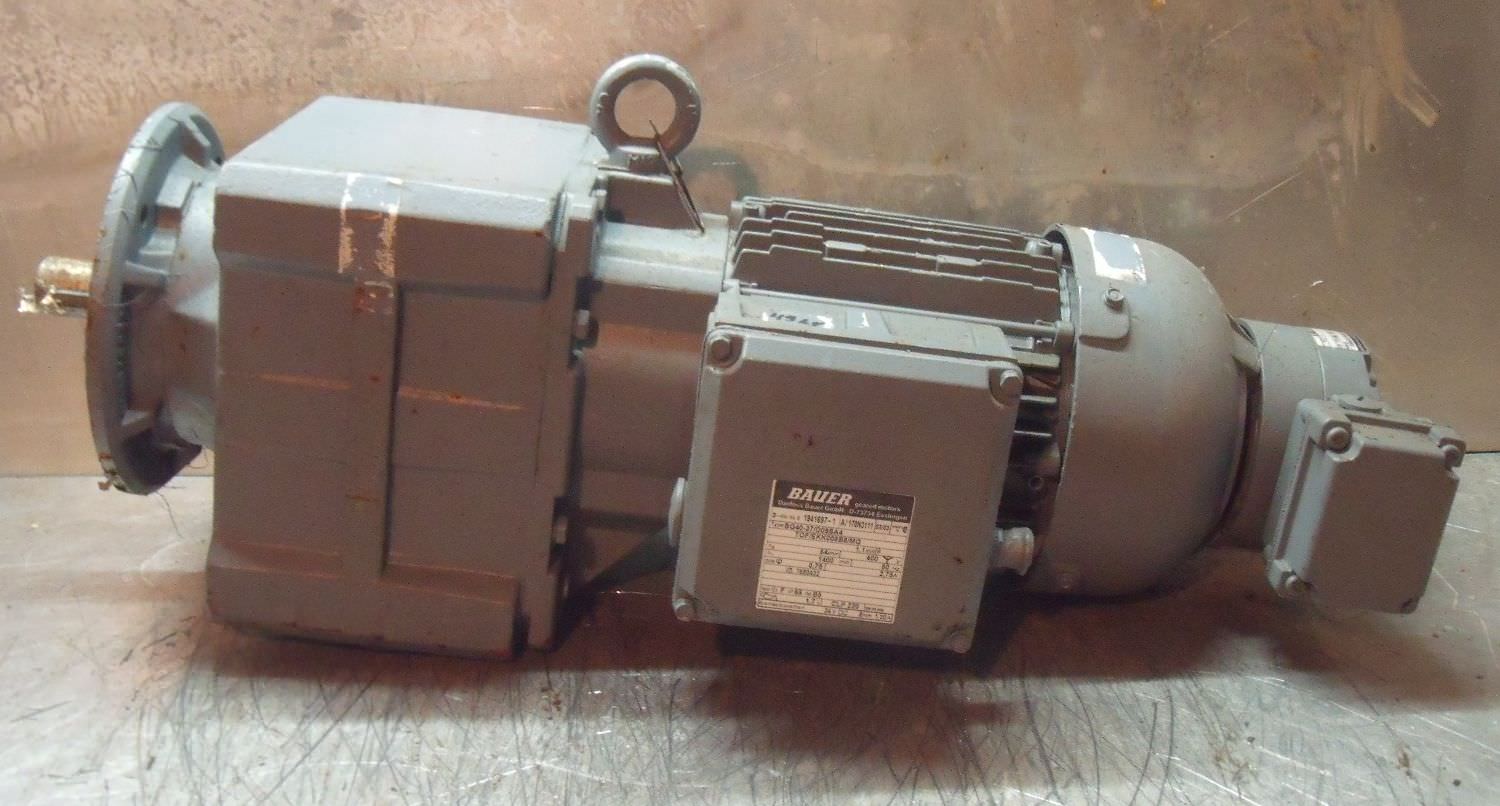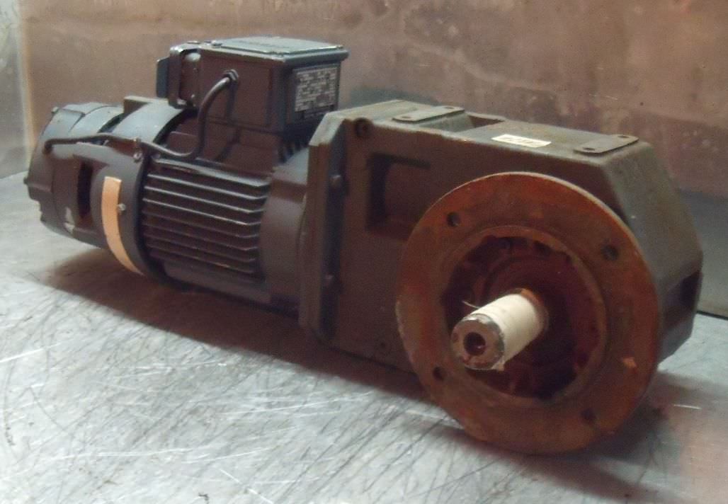 Gear motor, electric motor, electric gear motor-Manufacturer: SEW-Eurodrive, geared motor-Type: SA77 DAS90S4/TF/IS-Speed: 1450/6.4 rpm i= 225.26-Power: 0.55 kW-Hollow shaft: Ø 50 x 190 mm-Dimensions: 550/280/H300 mm-Weight: 69 kg