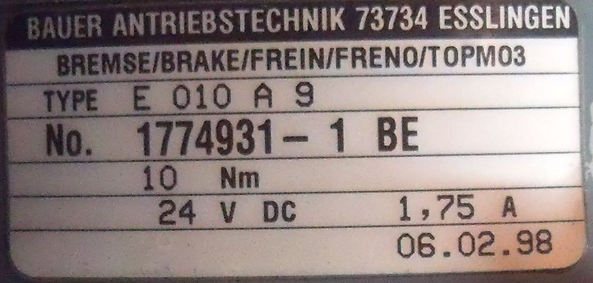 geared motor, electric motor -Speed: 28.5 rpm -Power: 0.75 kW -Design: B5 angle -Shaft diameter: Ø 35 mm -Brake: 24 V -Protection class: IP 65 -Weight: 45 kg