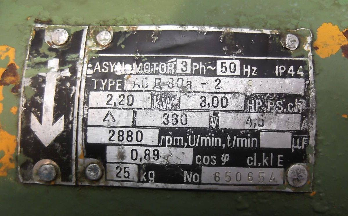 Electric motor, three-phase motor-Power: 2.2 kW-Speed: 2880 rpm-Shaft: Ø 25 x 40 mm-Protection class: IP 44-Dimensions: 410/225/170 mm-Weight: 24 kg
