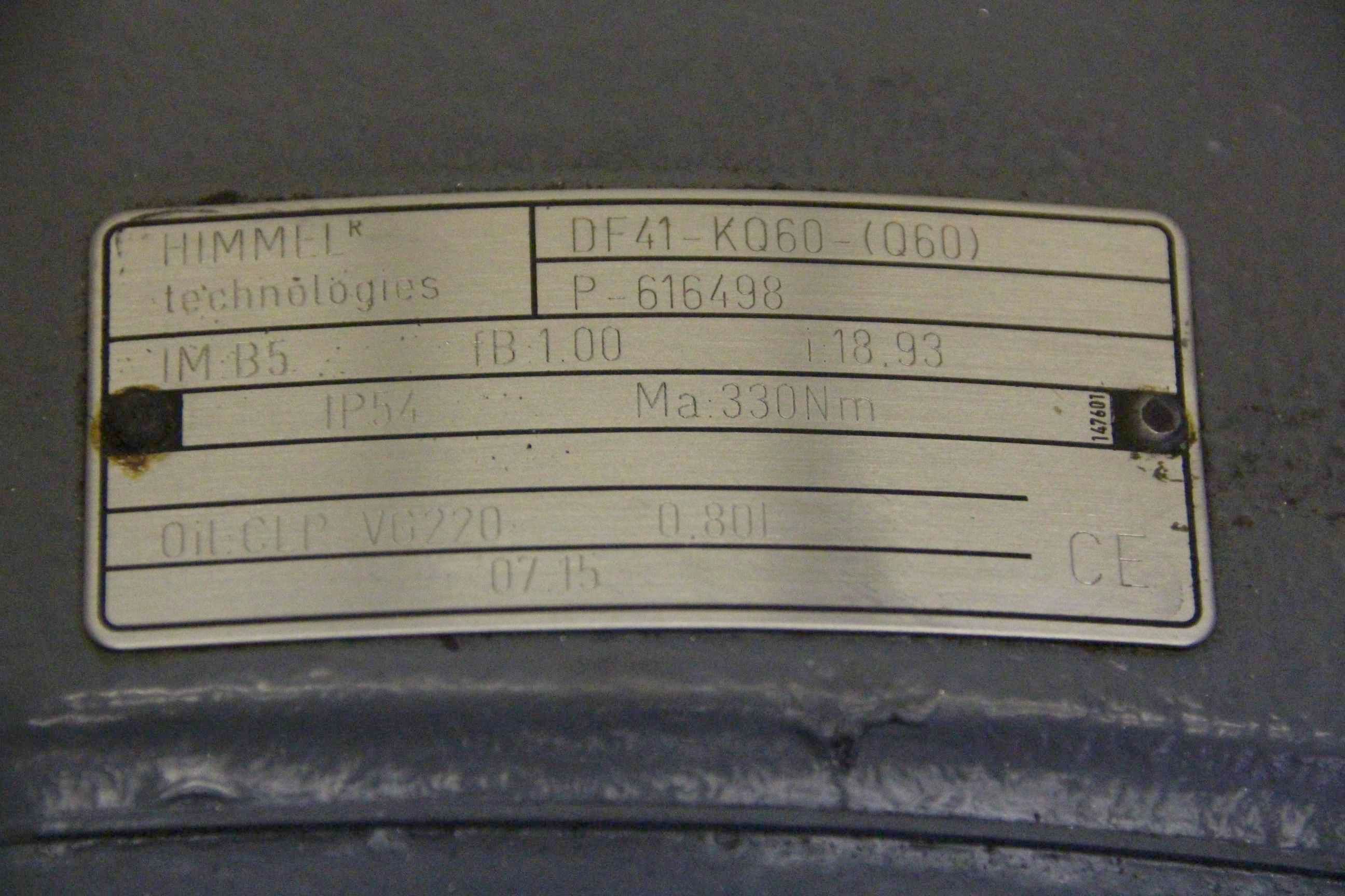 Gears, spur gears, bevel gears, worm gears-Manufacturer: Himmel, gearbox type DF41 - KQ60 - (Q60)-Translation: i 18.93-Drive shaft: Ø 30 x 60 mm-Hollow shaft: see photos-Ma: 330 Nm-Dimensions: 375/200/H225 mm-Weight: 27.3 kg