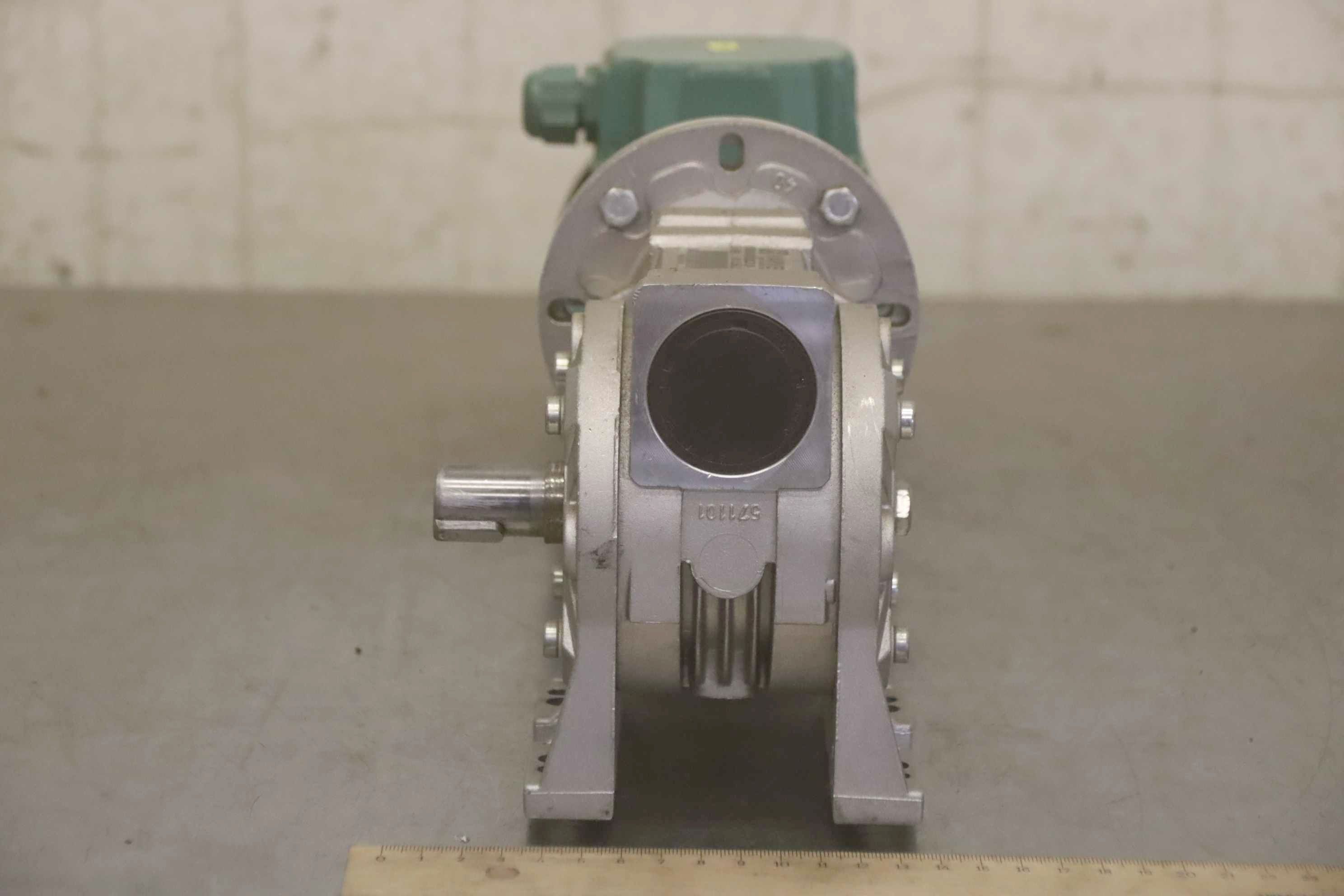 adjustable gear motor, variable speed gear motor, electric motor -Manufacturer gearbox Lenze type: 11.431.10.08.1 -Manufacturer Engine ATB Type: ERFY 0.55/4-7 -Engine power: 0.37 kW -Speed range: 111 to 617 rpm -Motor: adjustable -height shaft axis: 50 mm -Quantity: 1x available -Price: per piece -Drive shaft: Ø 16 mm -Dimensions: -Weight: 22 kg