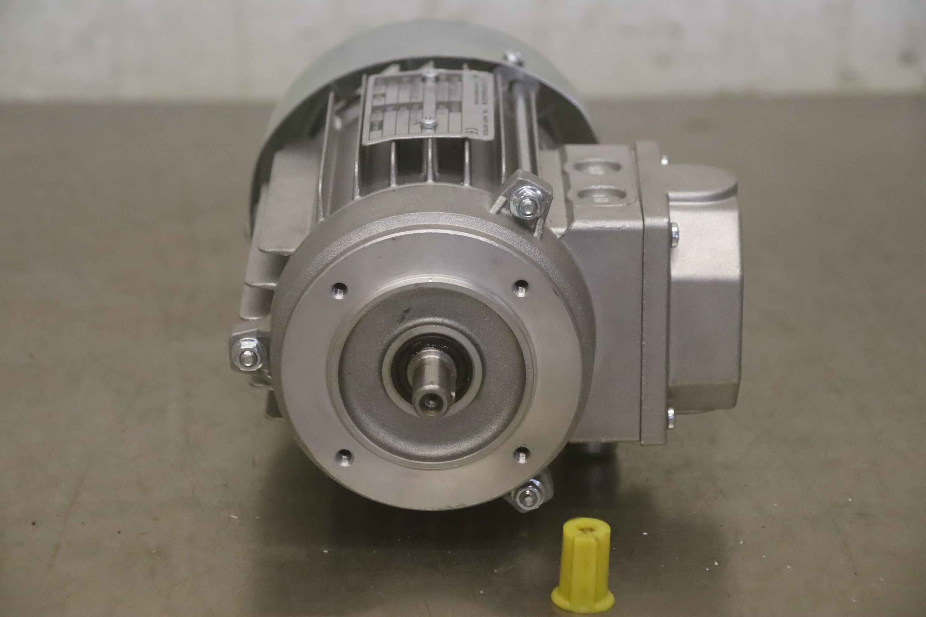 Electric motor, three-phase motor-Manufacturer: Verhagen, electric motor type 4P.T063D4 unused-Power: 0.37 kW-Speed: 1400 rpm-Shaft: Ø 11 x 20 mm-Construction: B14-Protection class: IP 55-Dimensions: 210/122/H155 mm-Weight: 5.0 kg