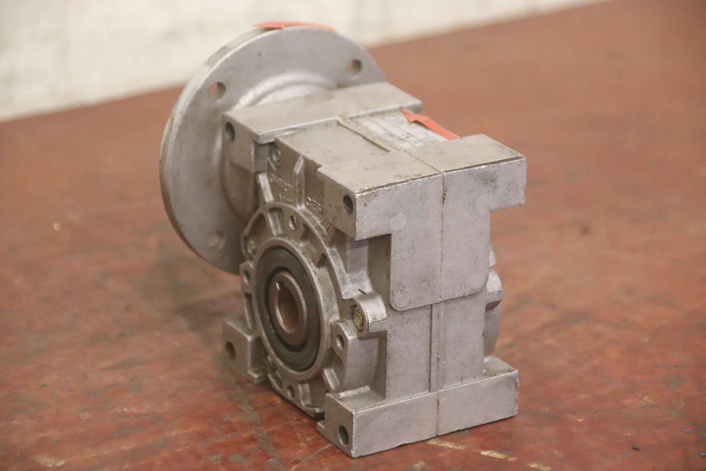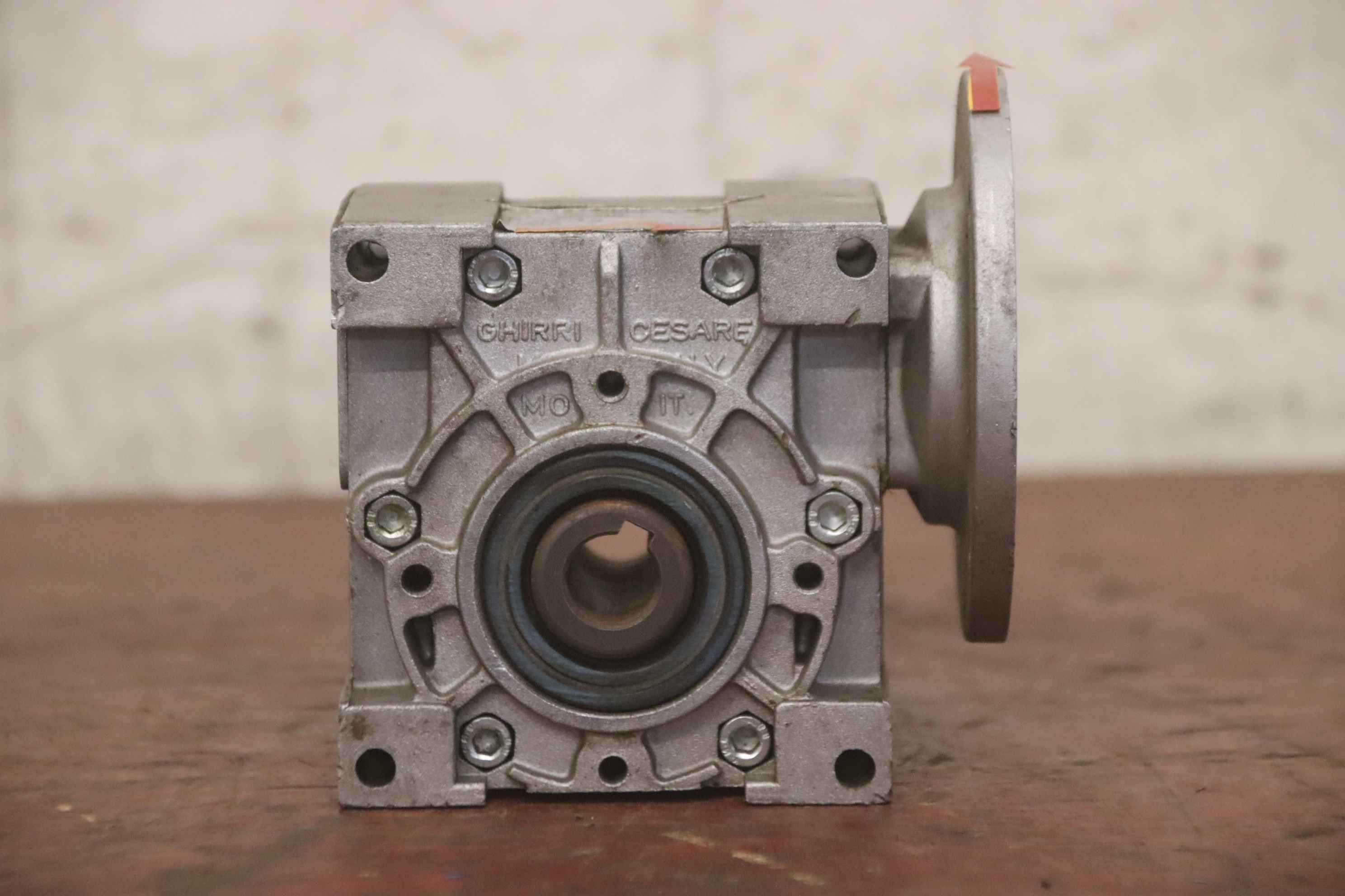 Gearbox, spur gear, angle gear, worm gear-Manufacturer:GHIRRI CESARE, worm gear type VQ 03-Translation: R. 1/10-Hollow shafts: Ø 11 x 28 mm / Ø 14 x 62 mm-Dimensions: 105/90/H110mm-Weight: 1.3 kg