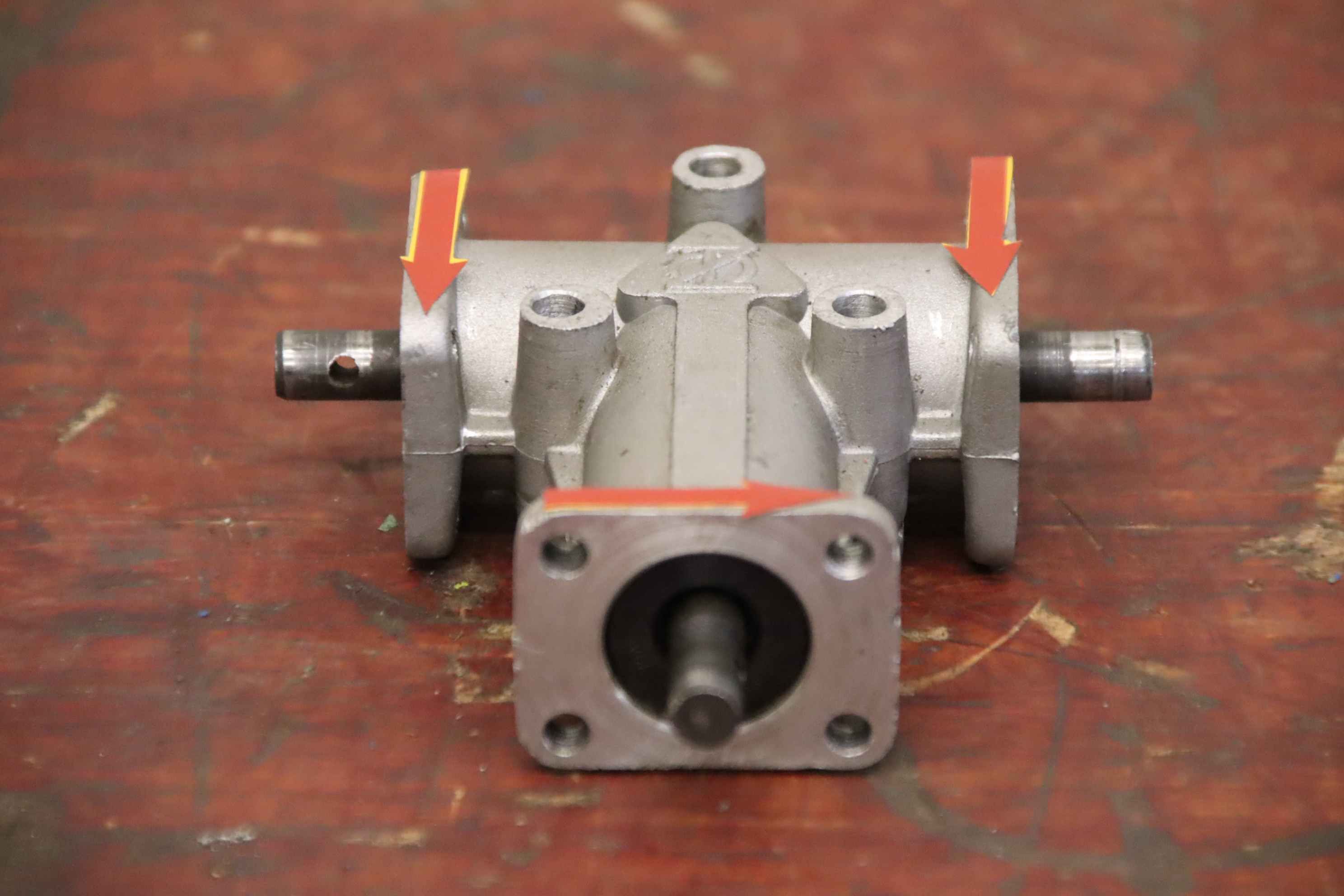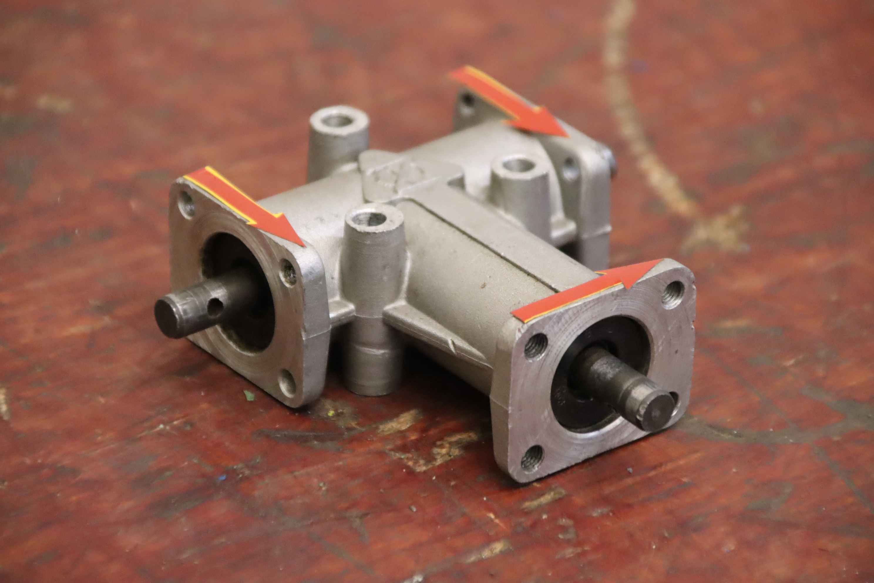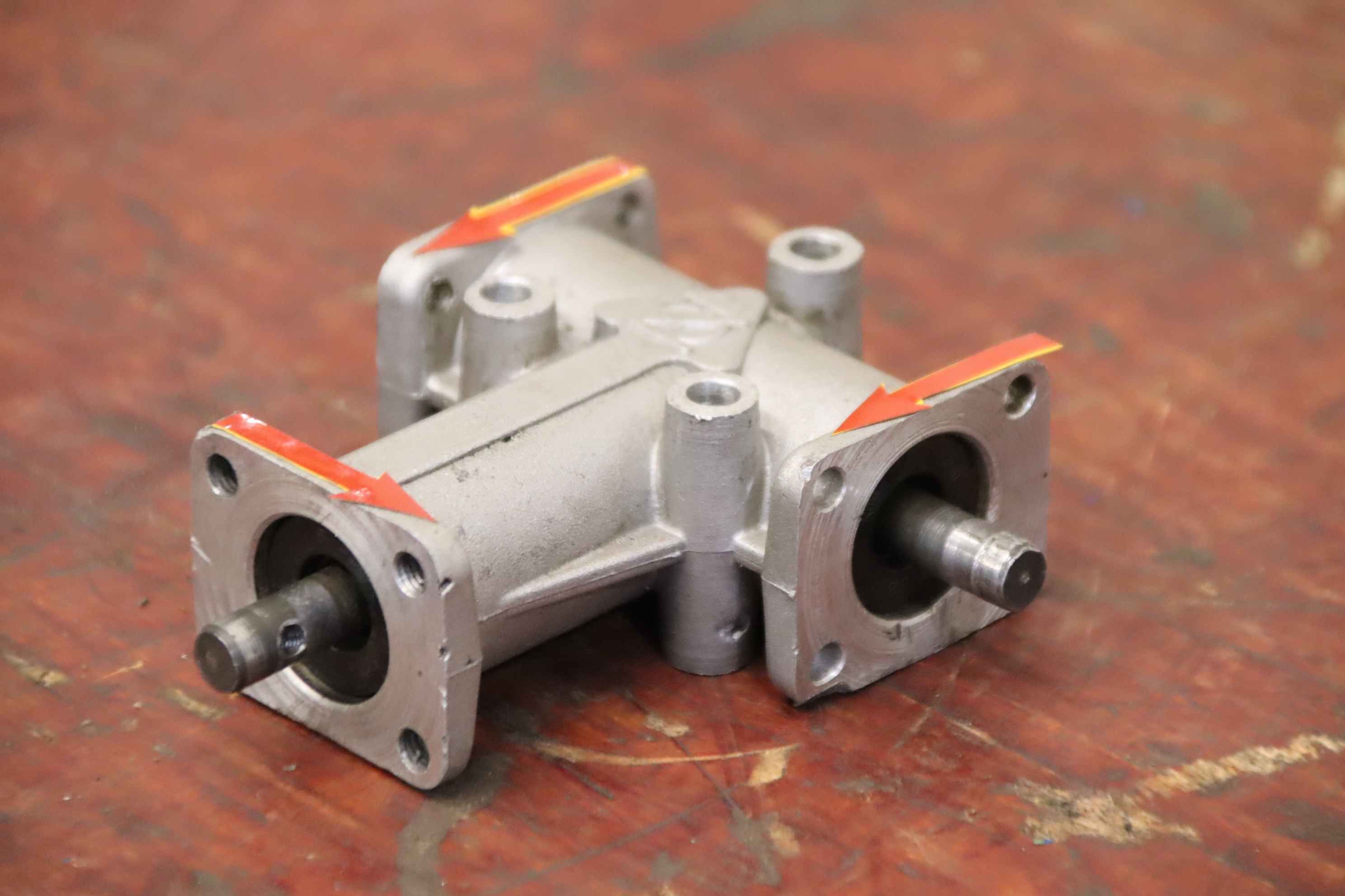 Gearbox, bevel gear, worm gear-Gearbox: Ratio: i = 1:1-Shafts: Ø 8 x 17 mm-Rotation direction: see photos-Dimensions: 98/97/33 mm-Weight: 0.3 kg