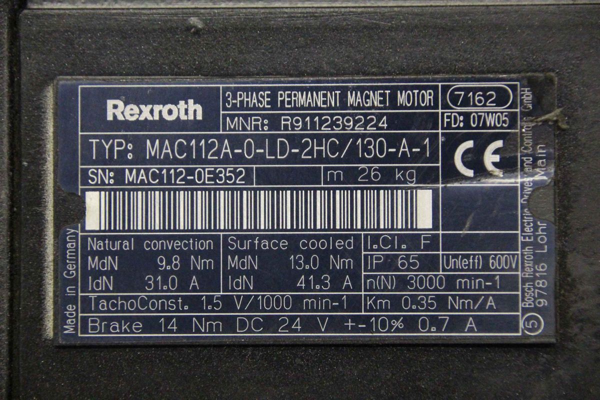Permanent magnet motor, permanent magnet motor, electric motor, permanent magnet motor, permanent magnet motor, servo motor-Manufacturer: Rexroth / Indramat, the motor comes from the Werner TC 2.6K machining center-Type: MAC112A-0-LD-2HC / 130-A-1-Speed: 3000 rpm-Shaft: Ø 32 x 60 mm-Brake: 14 Nm-Dimensions: 385/192 / H240 mm-Weight: 26 kg
