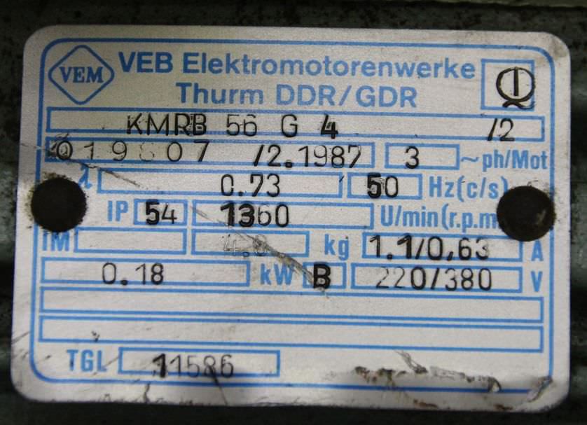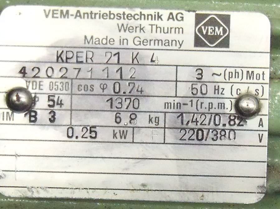 Direct current, gear motor-Power: 6.8 kW-DC motor: Manufacturer Baumuller type DSG 71-M-Gearbox: manufacturer Nord type 32-2AZ-IEC 90-Translation: 1: 25.88-Hollow shaft diameter: 40 mm-Speed: 4000 rpm/155 rpm-Tachometer: Manufacturer Stegmann type DG 60 XSR-Weight: 85 kg