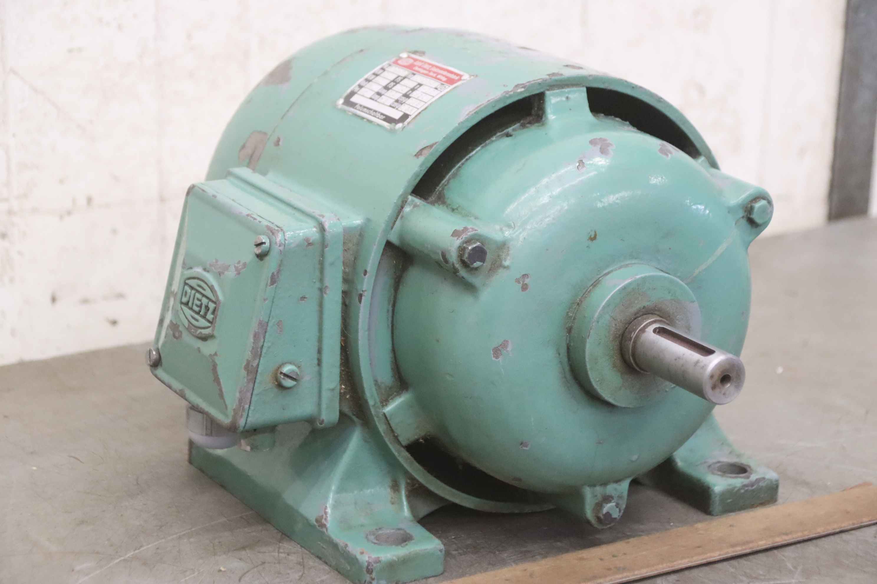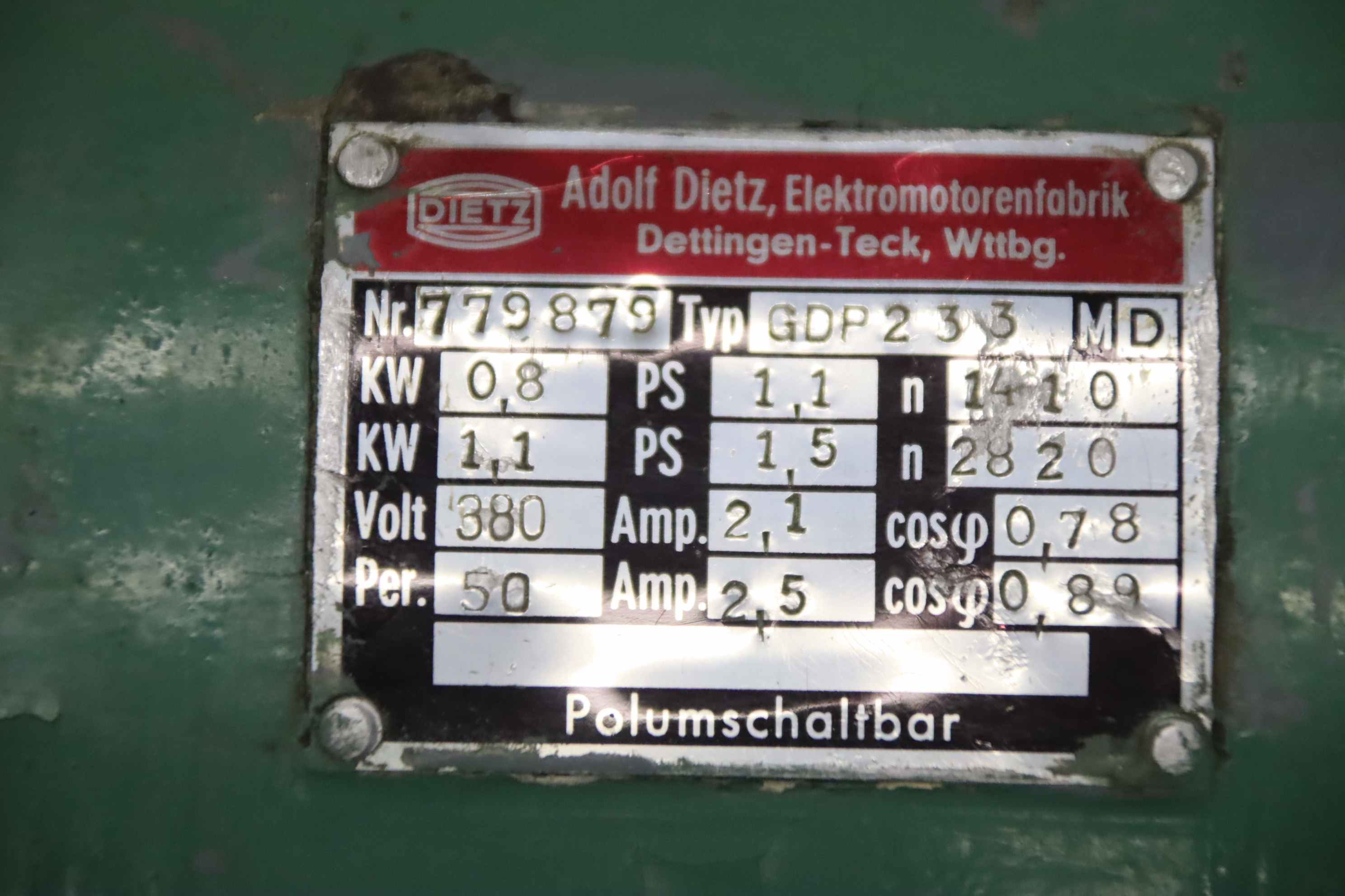 Electric motor, three-phase motor-Manufacturer: Dietz, electric motor type GDP 233 pole-changing-Power: 0.8/1.1 kW-Speed: 1410/2820 rpm-Shaft: Ø 22 x 50 mm-Construction: B3-Dimensions: 310/270/H210 mm-Weight: 25 kg