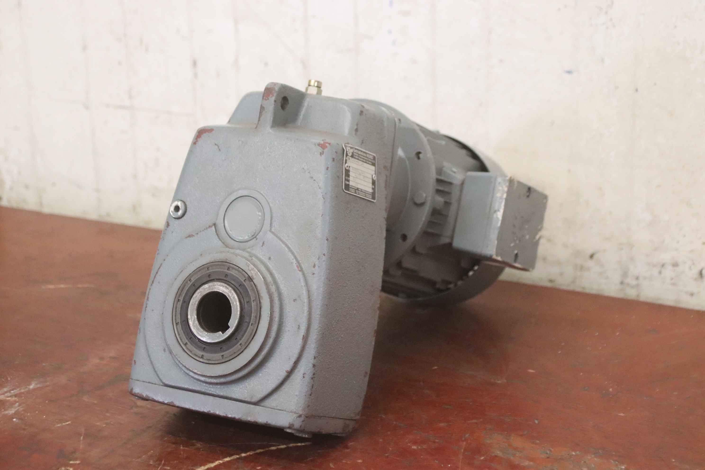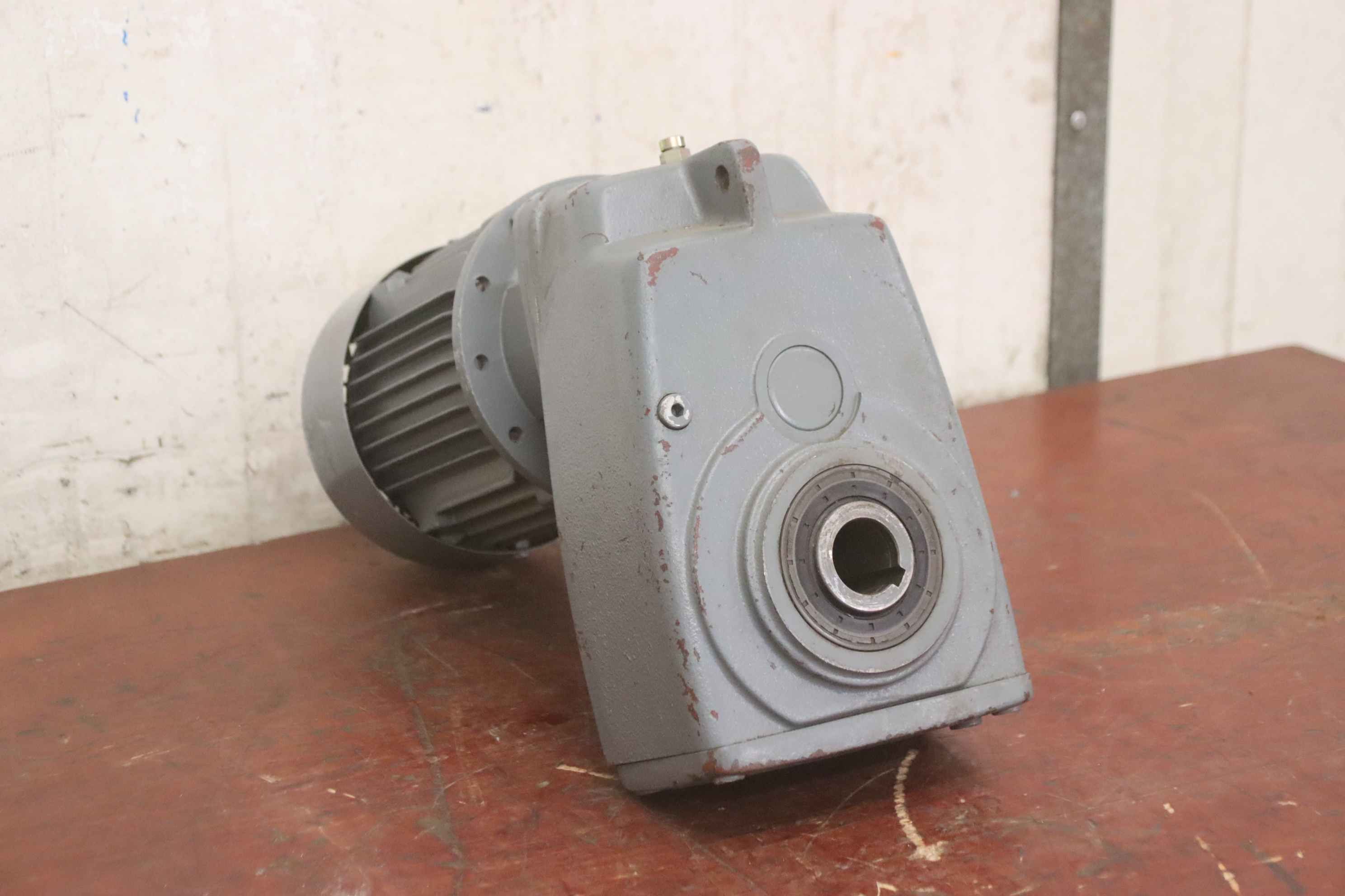 Gear motor, electric motor, electric gear motor, bevel gear motor-Manufacturer: Ruhr gearbox, geared motor type SN9BFH 40:1-Power: 0.37 kW-Speed: 35 rpm-Protection rating: IP55-Engine: Type H7 1B/4-Power: 0.37 kW / 1390 rpm-Hollow shaft: Ø 19 x 90 mm-Dimensions: 330/180/H155 mm-Weight: 8.8 kg