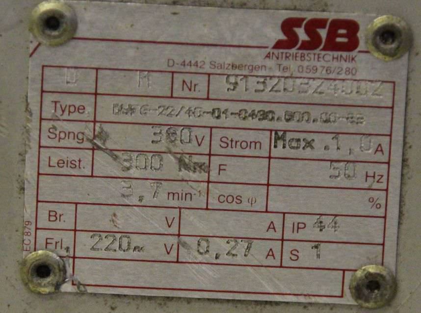 Gear motor, electric motor, electric gear motor-Speed: 0,5/2,3 rpm-Power: 0.55 kW-Construction: B14 angle-Diameter shaft: 42 mm-Protection class: IP44-Brake: 24 V-Number: 1x engine available-Dimensions: 700/300/H280 mm-Weight: 78 kg