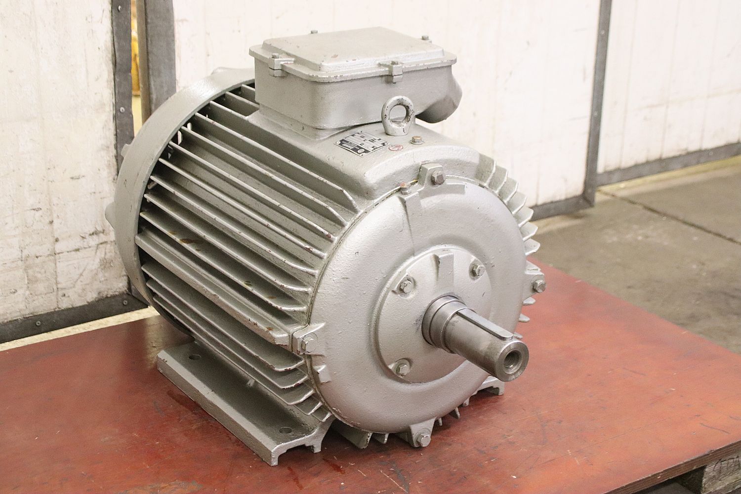 Three-phase motor, electric motor-Manufacturer: VEM, electric motor type KR 160 1/4-Power: 10 kW-Speed: 1450 rpm-Shaft: Ø 38 x 80 mm-Protection class: IP44-Design: B3-Dimensions: 520/410/H320mm-Weight: 95 kg