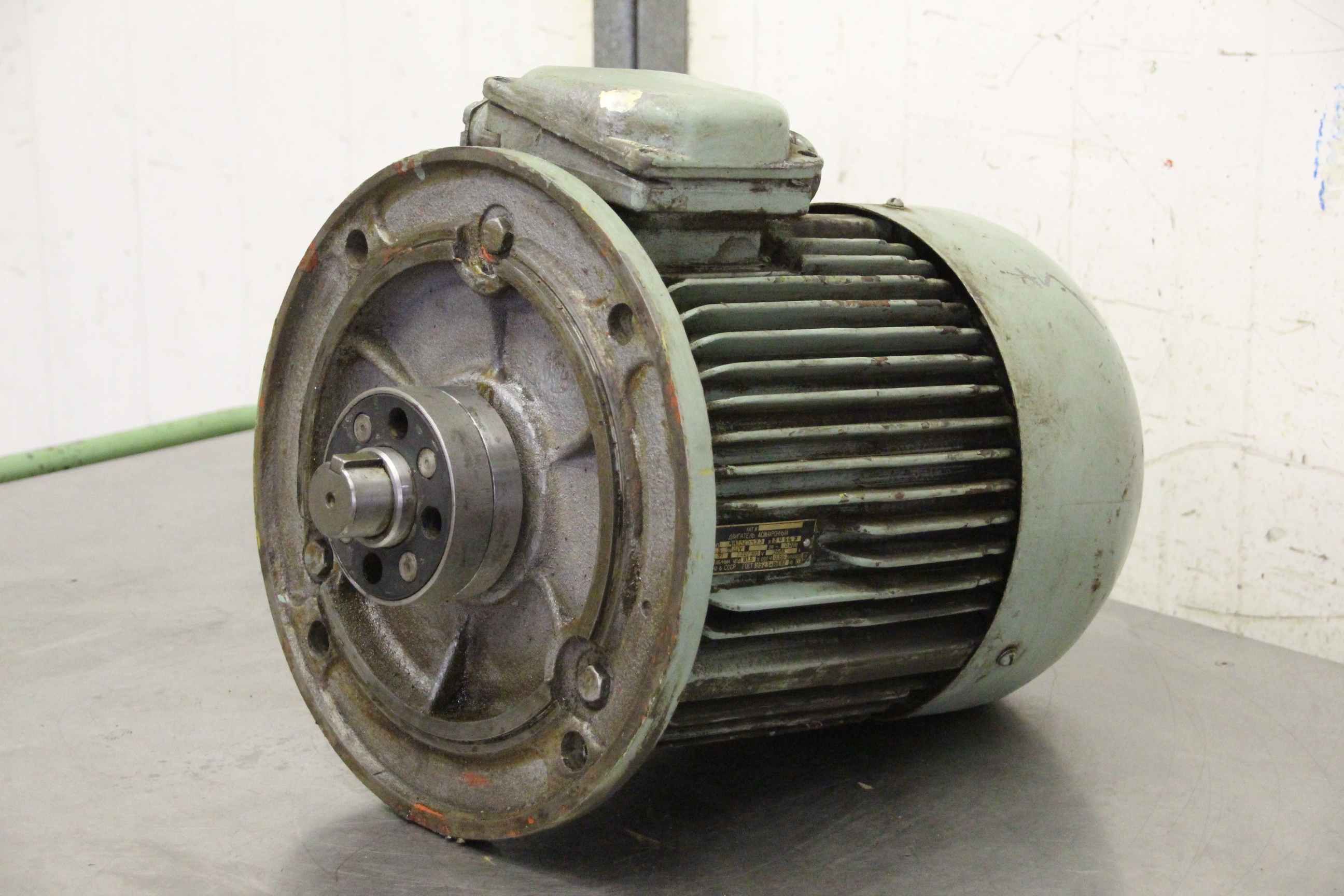 Three-phase motor with 2 speeds, electric motor-Transfer in current condition as seen-Power: 3/11 kW-Speed: 720/1450 rpm-Shaft: Ø 42 mm-Construction: B3-pole changing-Protection class: IP 54-Price: per piece-Number: 1x available-Dimensions: 600/390/H320 mm-Weight: 108 kg