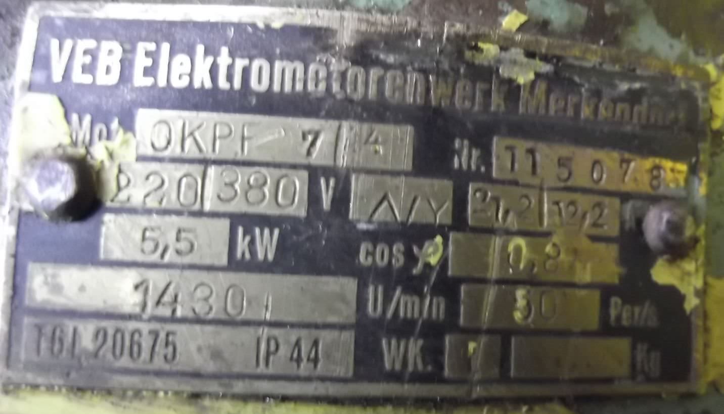 Servo motor, electric motor, DC motor, stepper motor, stepper motor, stepping motor-Power: 0.8/11/11 kW 60/818/4500 rpm-Speed: 60/818/4500 rpm-Shaft: Ø 48 mm-Number: 2x motors available-Price: per piece-Dimensions: 330/330/H875 mm-Weight: 230 kg