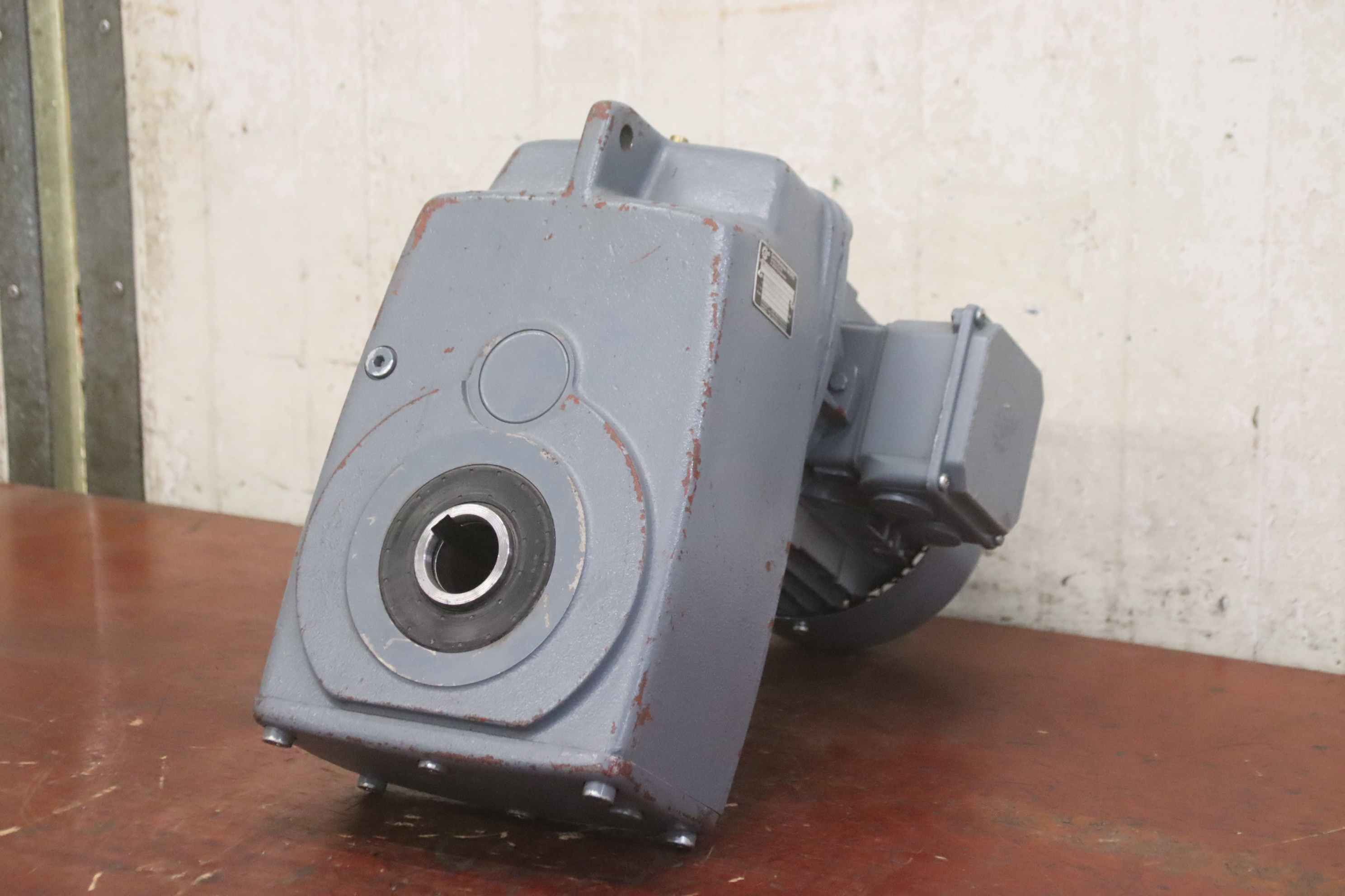 Gear motor, electric motor, electric gear motor, bevel gear motor-Manufacturer: Ruhr gearbox, geared motor type SN9BFH 40:1-Power: 0.37 kW-Speed: 35 rpm-Protection rating: IP55-Engine: Type H7 1B/4-Power: 0.37 kW / 1390 rpm-Shaft: Ø 20 x 65 mm-Dimensions: 330/220/H155 mm-Weight: 9.2 kg