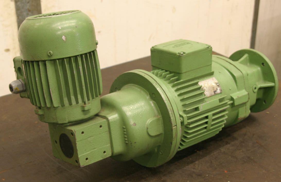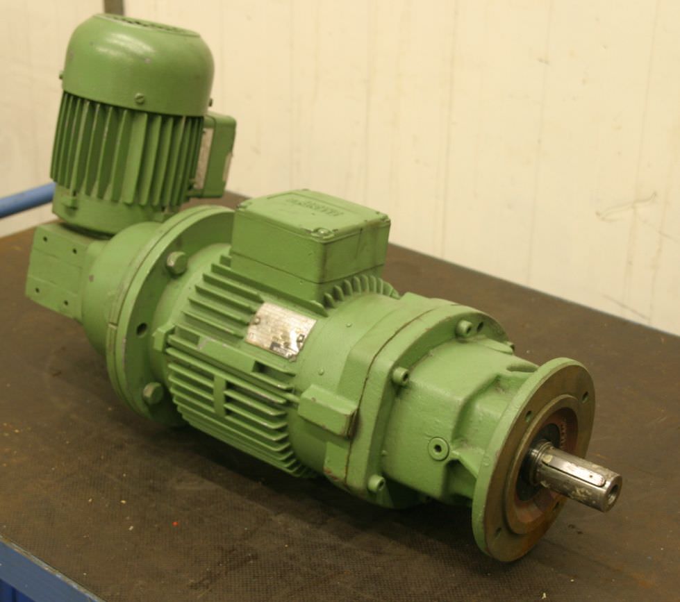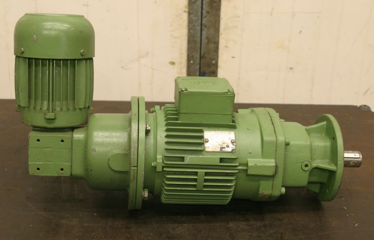 variable speed geared motor, variable speed geared motor, electric motor-Manufacturer gearbox: Prym type L8-U16-Manufacturer engine: AEG type AM 90 S 8/4-Motor power: 0.37/0.7 kW 680/1370 rpm-Speed range adjustable: 10 to 100 rpm-Drive shaft: Ø24 x 50 mm-Construction: B3-Dimensions: 540/270/H210 mm-Weight: 37 kg