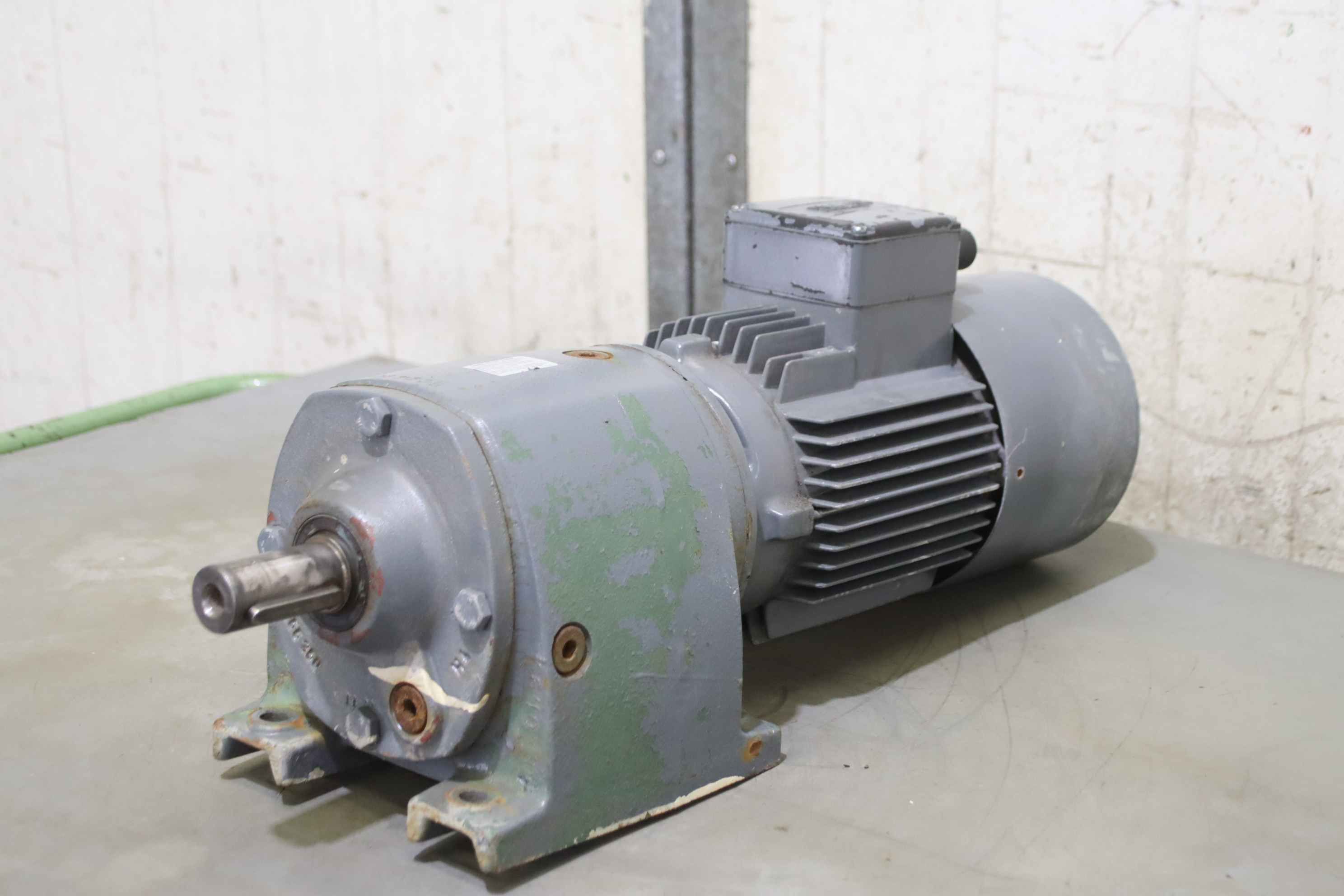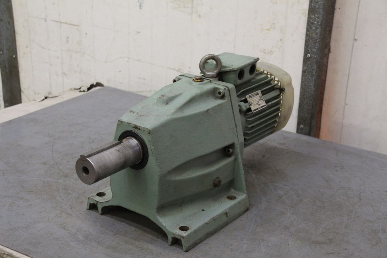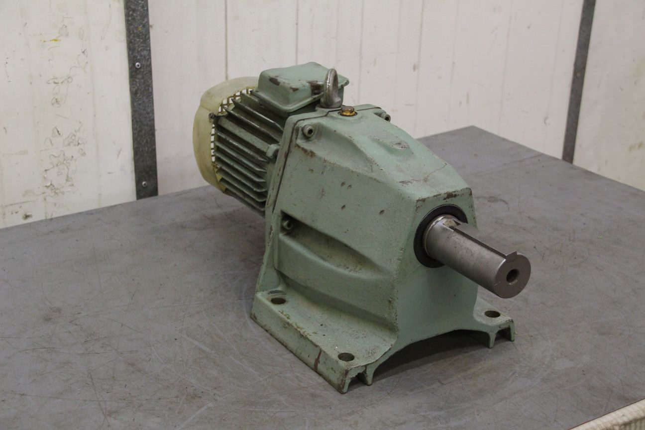 gear motor, electric motor, three-phase motor, electric gear motor-Manufacturer: Motovario, gear motor type NHRV/ 030-Speed speeds: approx. 68 rpm i= 20-Engine manufacturer: DRdrives Type 63A-4-Power: 0.12 kW / 1360 rpm-Hollow shaft: Ø 14 x 60 mm-Number: 2x gear motor available-Price: per piece-Dimensions: 288/155/H125 mm-Weight: 5.3 kg/piece