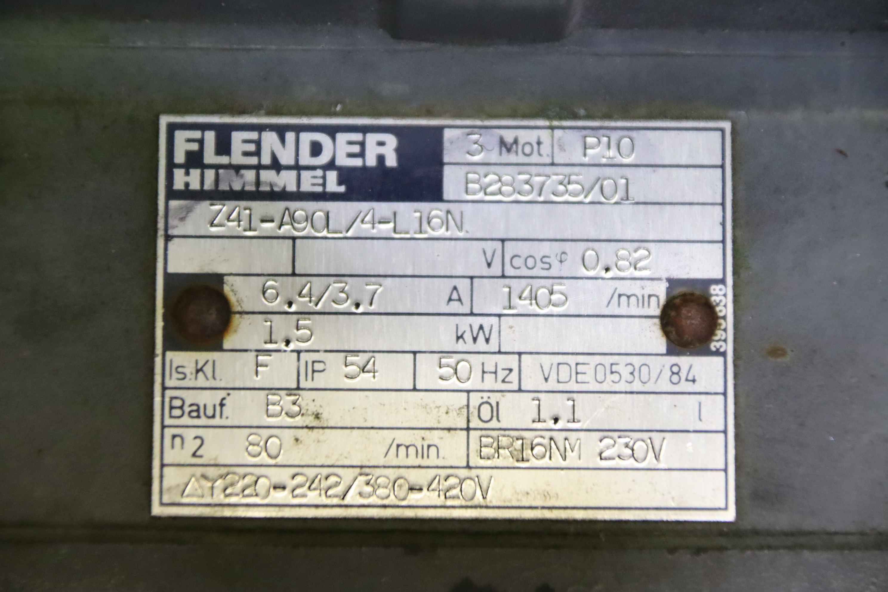 Gear motor, electric motor, three-phase motor, electric gear motor-Manufacturer: Flender, geared motor with brake-Type: Z41-A90L/4-L16N-Speed: 80 rpm-Power: 1.5kw-Construction: B3-Shaft: Ø 30 x 60 mm-Protection class: IP 54-Brake: 16 Nm-Dimensions: 620/190/H250 mm-Weight: 40 kg