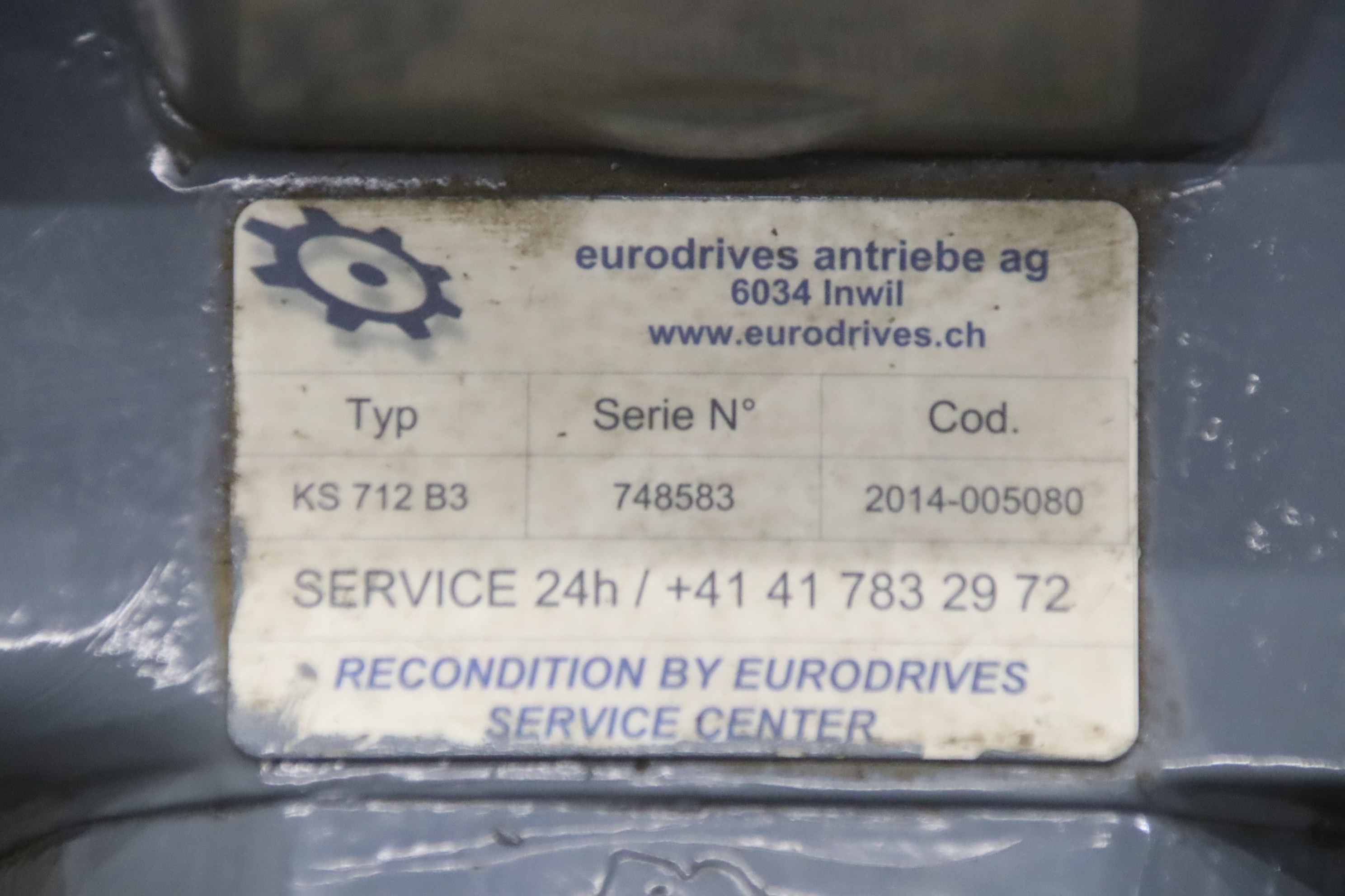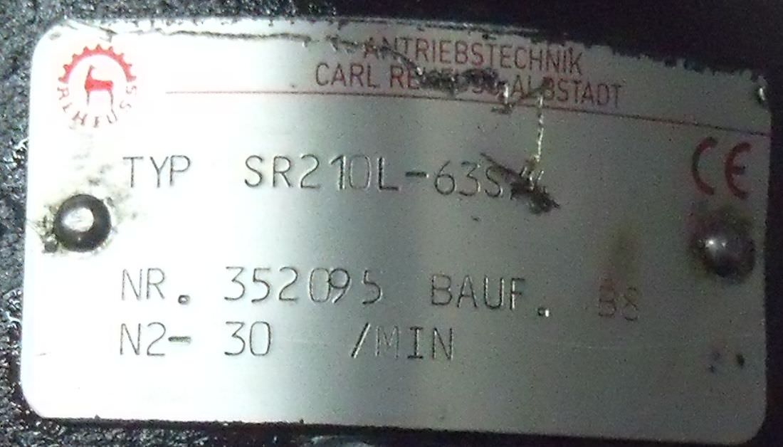-Gearbox manufacturer: SEW Eurodrive R82-62-V01 -Manufacturer Motor SEW Eurodrive Type: VUF1DT80K-4 -Engine power: 0.55 kW -Speed range: 0.72-4.3 rpm -Motor: adjustable -height of shaft axis: 180 mm -Drive shaft: Ø 50 mm -Quantity: 1 piece available -Dimensions: 800/290/H520 mm -Weight: 108 kg