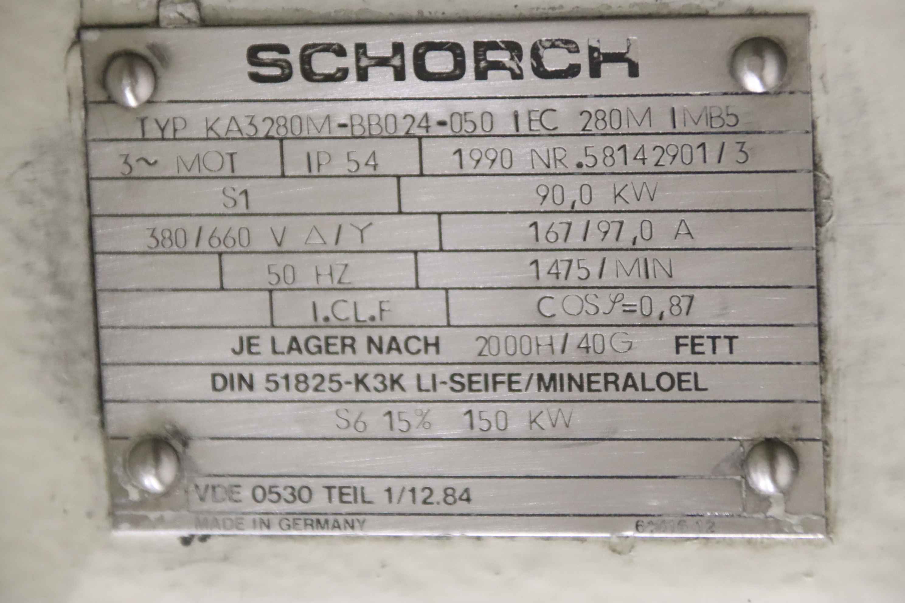 electric motor, three-phase motor -Manufacturer: Schorch, electric motor type KA3280M-BB024-050 -Power: 90 kW -Speed: 1475 rpm -Shaft: Ø 75 x 140 mm -Design: B5 -Protection class: IP 54 -Number: 2x motors available Price: per piece -Dimensions: 1050/700/H550 mm -Weight: 688 kg/unit