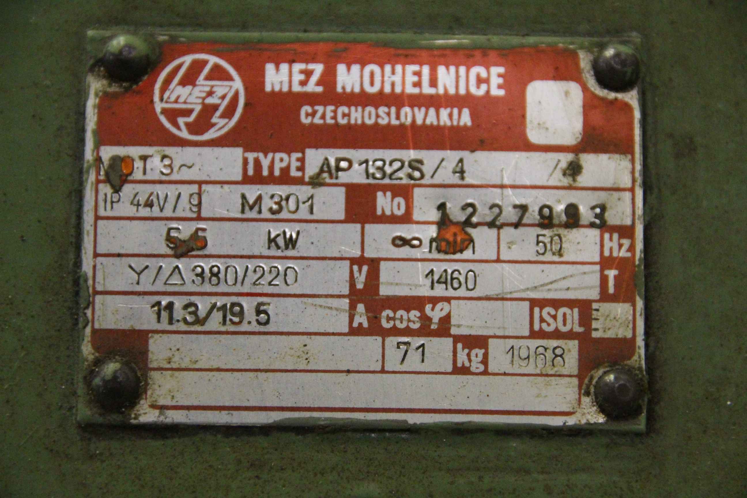 electric motor, three-phase motor -Manufacturer: MEZ, electric motor from milling machine TOS FB25-V -Type: AP 132S/4 -Power: 5.5 kW -Speed: 1460 rpm -Shaft: Ø 38 x 80 mm -Design: B5 -Protection rating: IP44 -Dimensions: 490/350/H300 mm -Weight: 73 kg