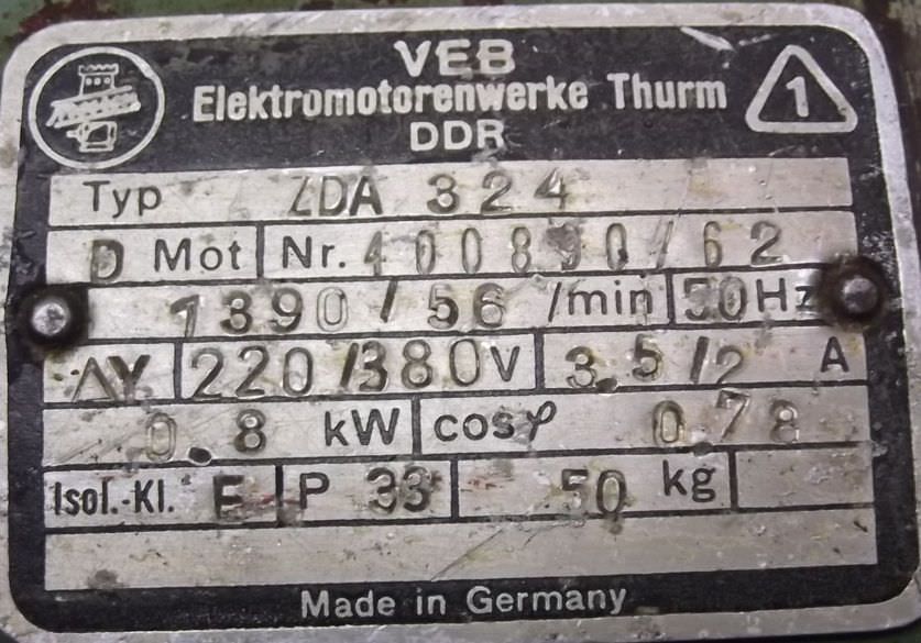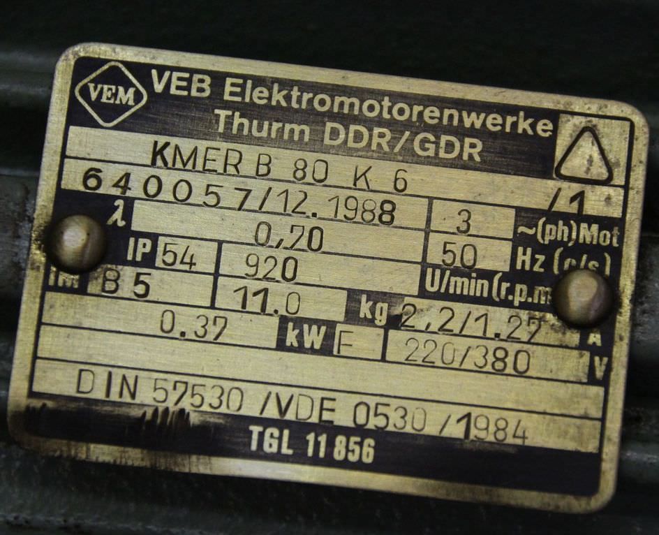 Three-phase motor, electric motor -Manufacturer: VEM, electric motor type KMR 71 G 4-2 -Power: 0.55/0.7 kW -Speed: 1400/2840 rpm -Shaft: Ø 19 x 40 mm -Protection class: IP44 -Number: 1 piece available -Dimensions: 250/140/H180 mm -Weight: 11kg