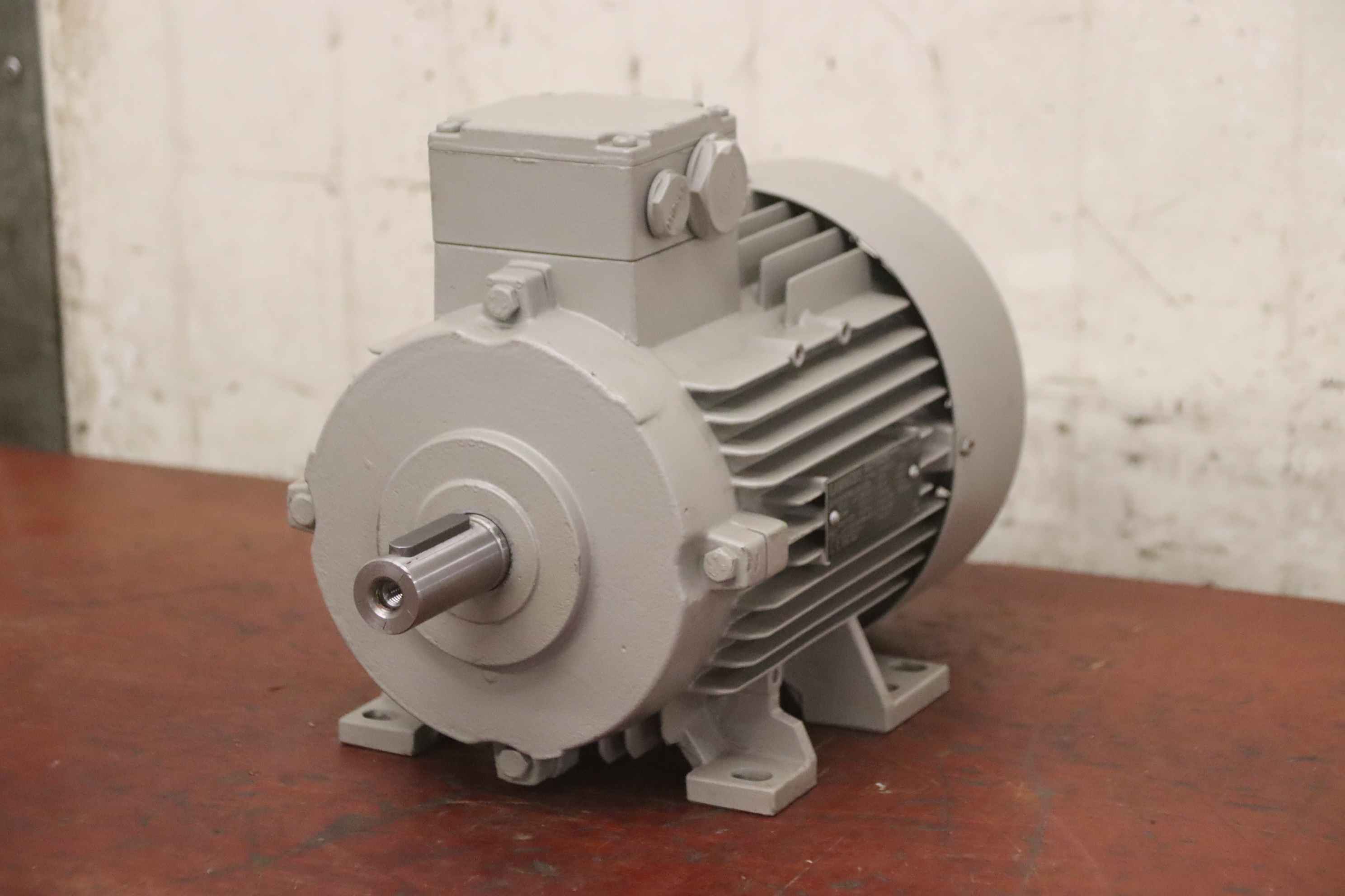 Electric motor, three-phase motor-Manufacturer: Siemens-Schuckertwerke, electric motor type 1LA2026-4AB-Power: 0.37 kW-Speed: 1360 rpm-Shaft: Ø 14 x 30 mm-Design: B3-Protection rating: P33 Tropical proof-Dimensions: 233/140/H180 mm-Weight: 6.0 kg