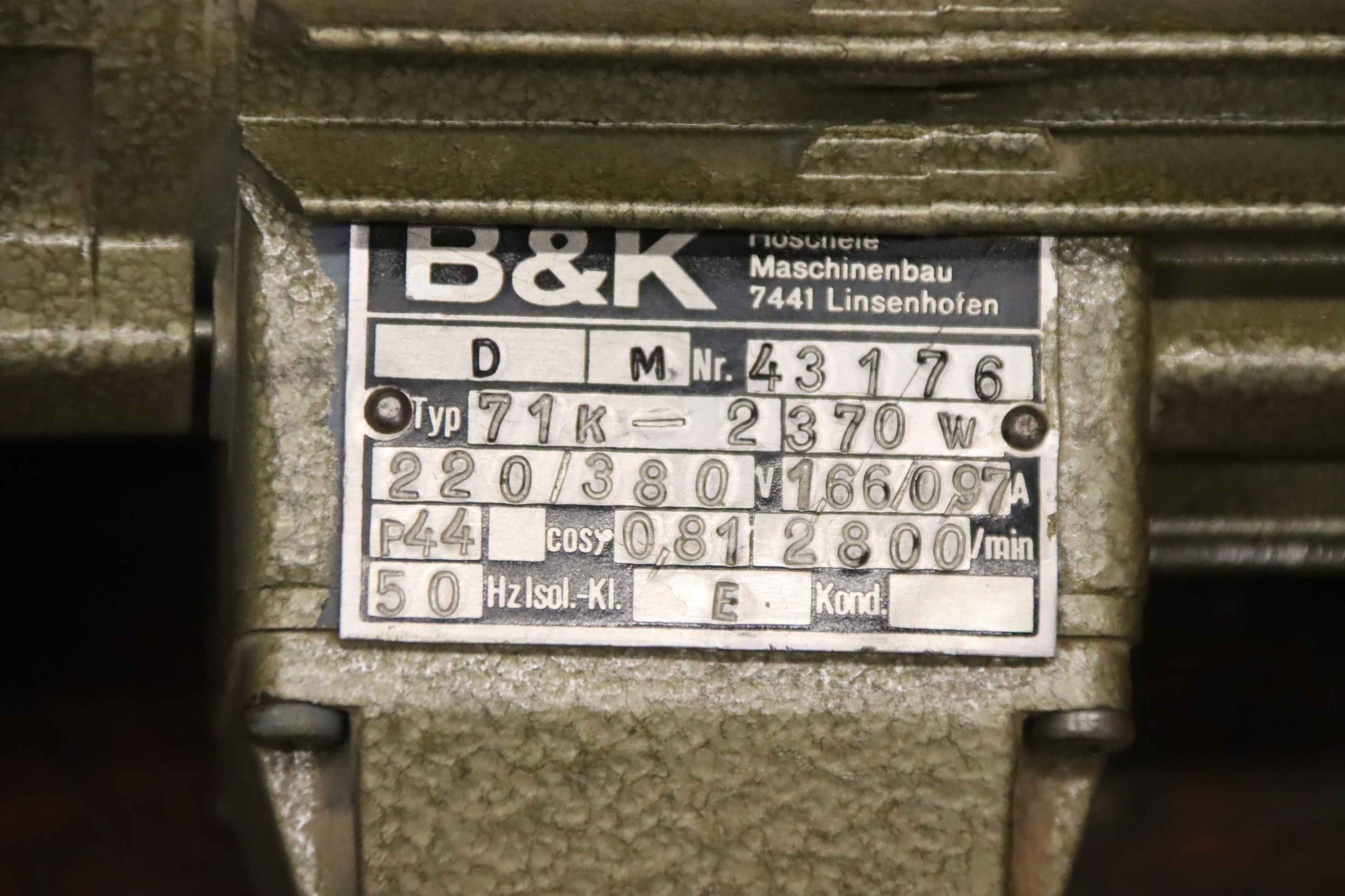 gear motor, electric motor -Engine Manufacturer: Nord SK71L/4 -Speed: 53 rpm -Engine power: 0.37 kW -Type: B3 -Drive shaft: Ø 20 mm -Protection class: IP 54 -Dimensions: 430/140/H200 mm -Weight: 14 kg