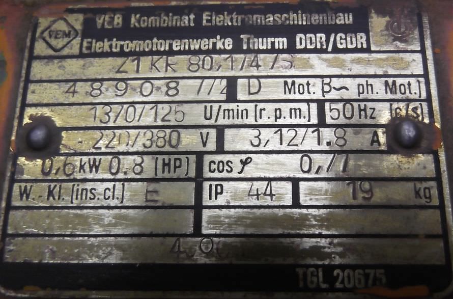 Gear motor electric motor Electric gear motor-Speed: 16 rpm-Power: 0.33 kW-Construction: B3-Diameter shaft: 48 mm-Protection class: IP 44-Price: per piece-Number: 1x available-Weight: 43 kg