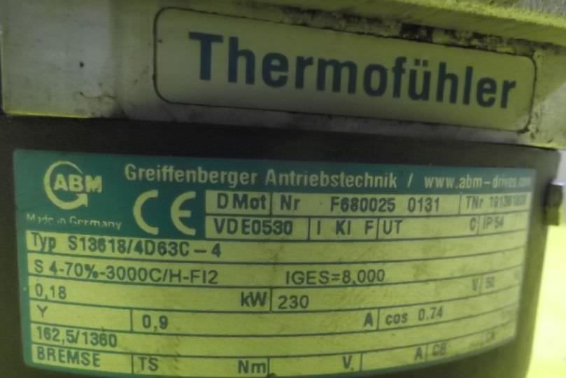 Gear motor, electric motor, three-phase motor-Fan cover: defective-Power: 0.18 kW-Speed: 162.5 rpm-Hollow shaft: Ø 19 mm-Construction:-Protection class: IP 54-Number: 5x motors available-Price: per piece-Dimensions: 240/1147/H150 mm-Weight: 5.9 kg