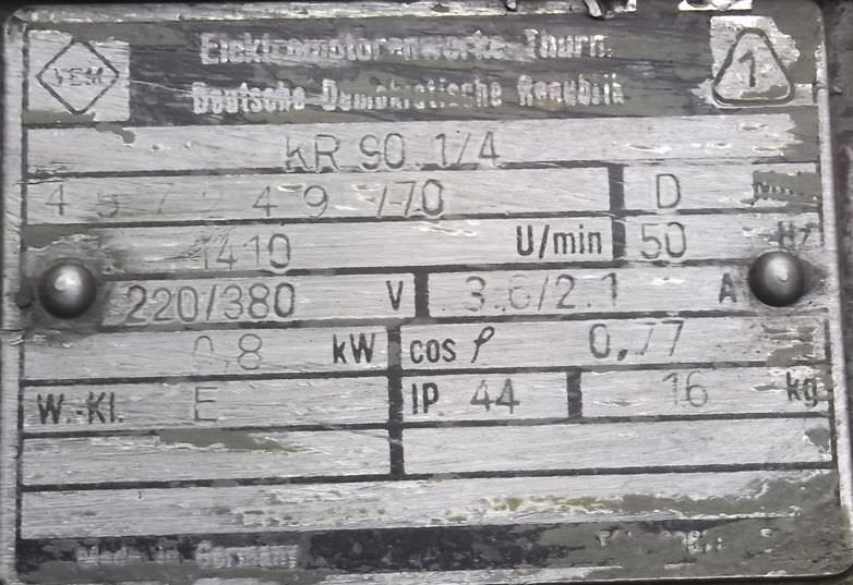 Gear motor, electric motor, electric gear motor -Speed: 179 rpm -Power: 9 kW -Design: B3 -Shaft diameter: 55 mm -Protection class: IP 44 -Quantity: 1 piece available -Price: per piece -Dimensions: 1000/310/H365 mm -Weight: 181 kg