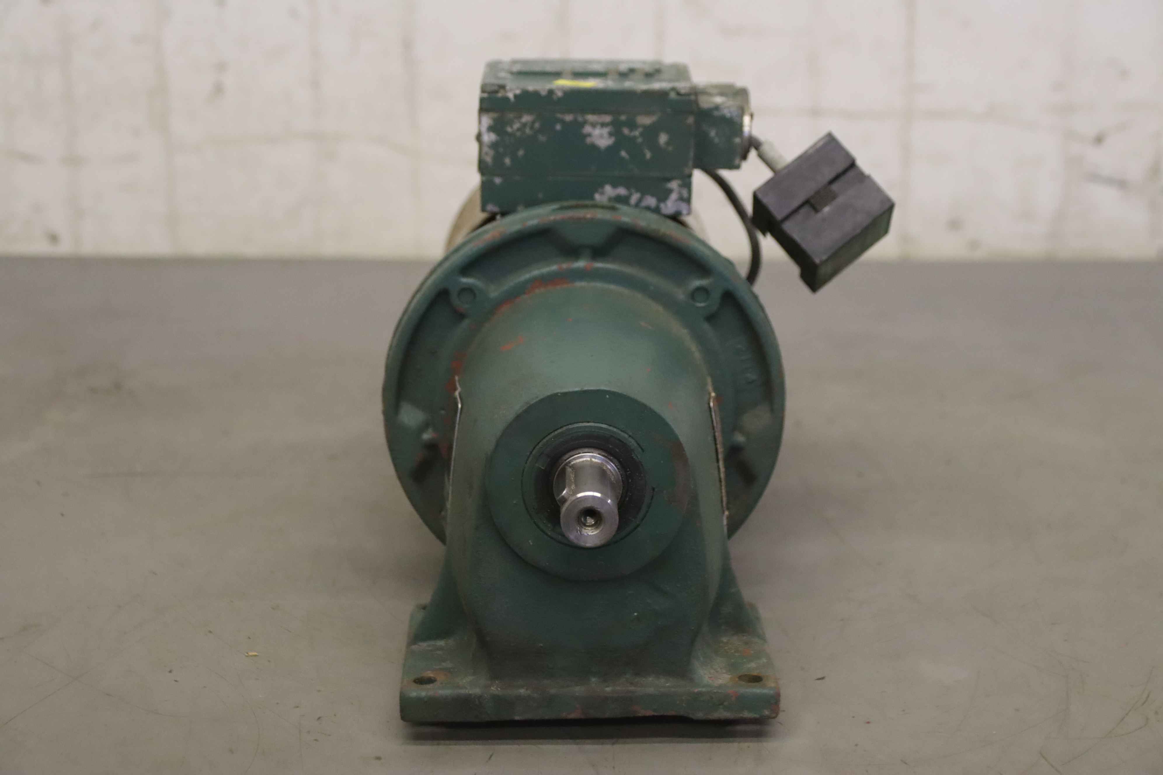 Servo motor, geared motor, electric motor -Manufacturer: Lenze, servo motor with gearbox -Speed: 92.7 rpm -Engine: Type MCA 10140-RS0B0 -Voltage: 390 V / 140 Hz -Power: 0.80 kW -Transmission: Type G50BH121MVAR2C00 i=42.593 -Shaft: Ø 25 x 50 mm -Quantity: 1x geared motor available -Dimensions: 483/160/H170 mm -Weight: 12.5 kg