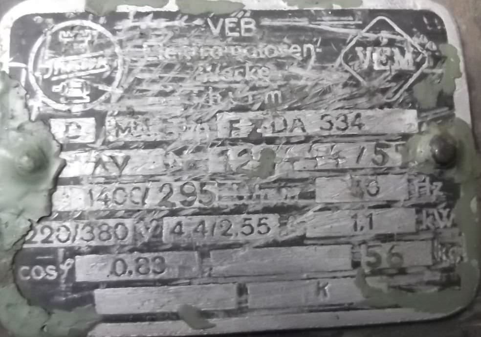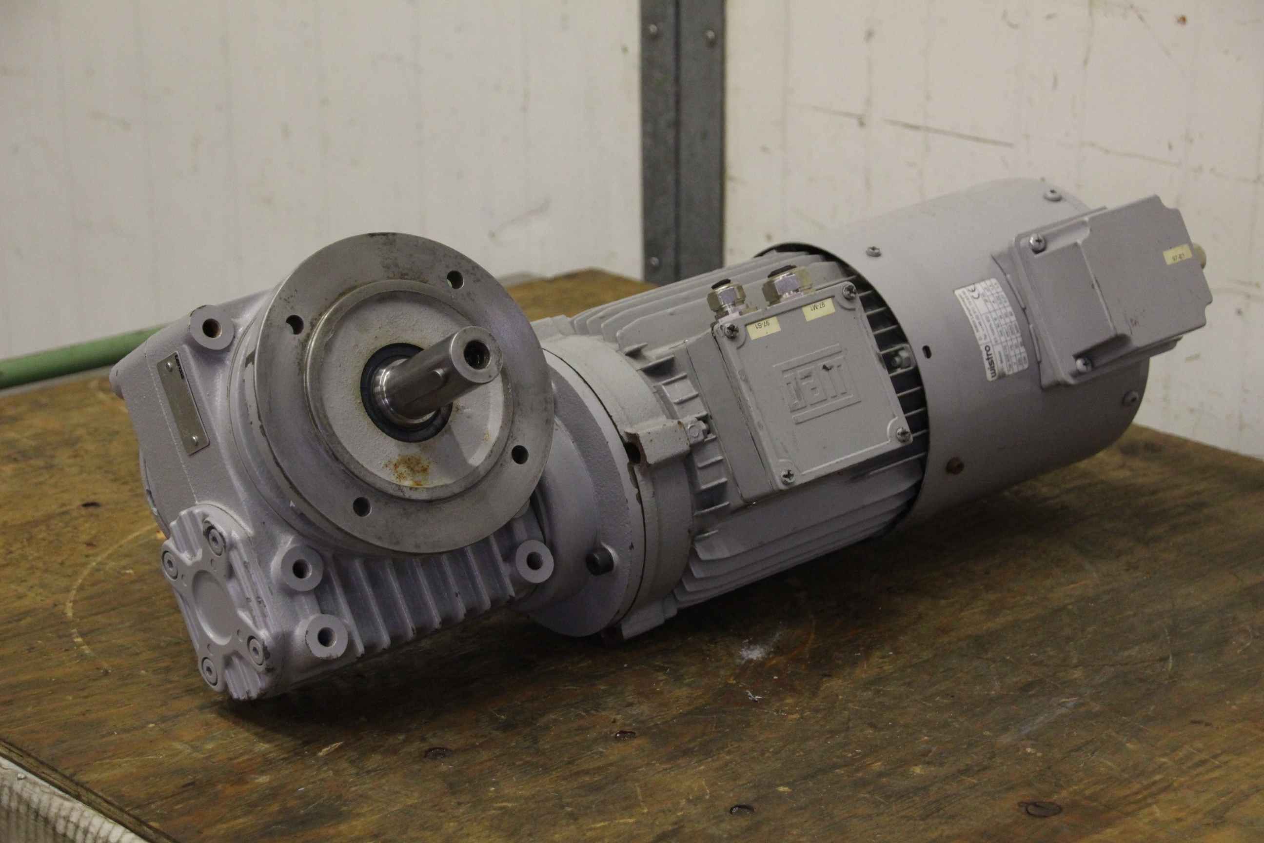 Gear motor, electric motor, electric gear motor-Engine manufacturer: VEM-Manufacturer gearbox: VEM-Speed: 295 rpm-Power: 1.1 kW-Construction: B5-Diameter shaft: 40 mm-Protection class:-Number: 1x motors available-Price: per piece-Dimensions: 530/250/H380 mm-Weight: 56 kg
